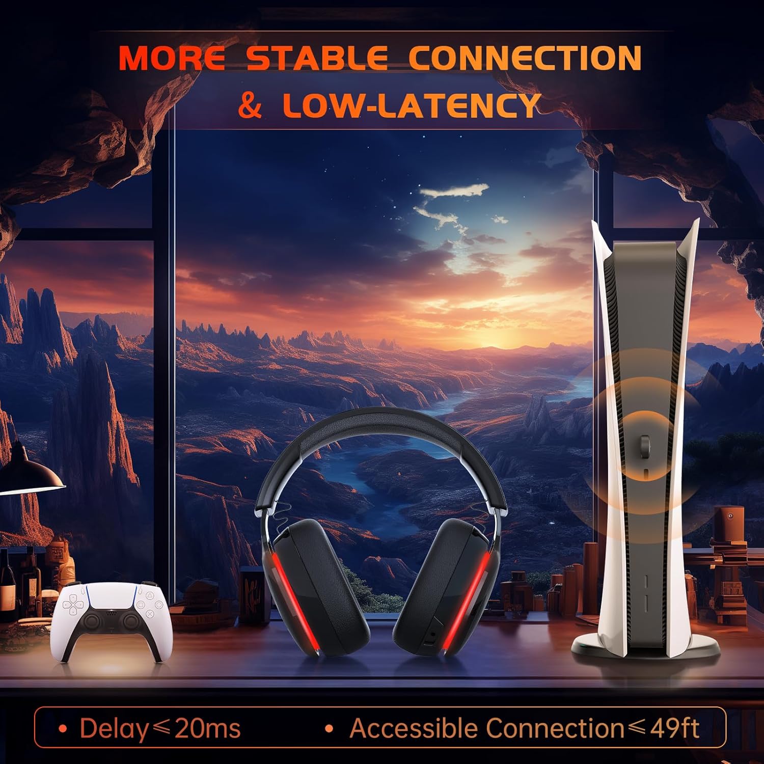 Gtheos 2.4GHz Wireless Gaming Headset for PS5, PS4 Fortnite & Call of Duty/FPS Gamers, PC, Nintendo Switch, Bluetooth 5.3 Gaming Headphones with Microphone for Computer, Mobile,...