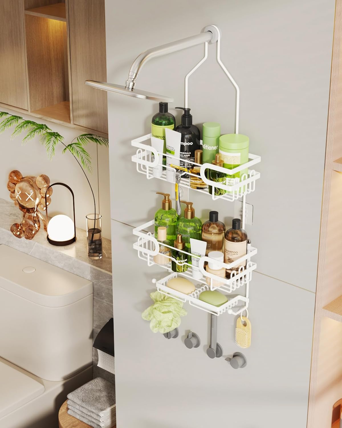 13 reviews for HapiRm Shower Caddy Hanging No Drilling, 3 Tier Over Head Shower Caddy, Bathroom Organizers with 2 Soap Holder & 12 Hooks, Bathroom Shelf Organizer for Shampoo, Soap, White