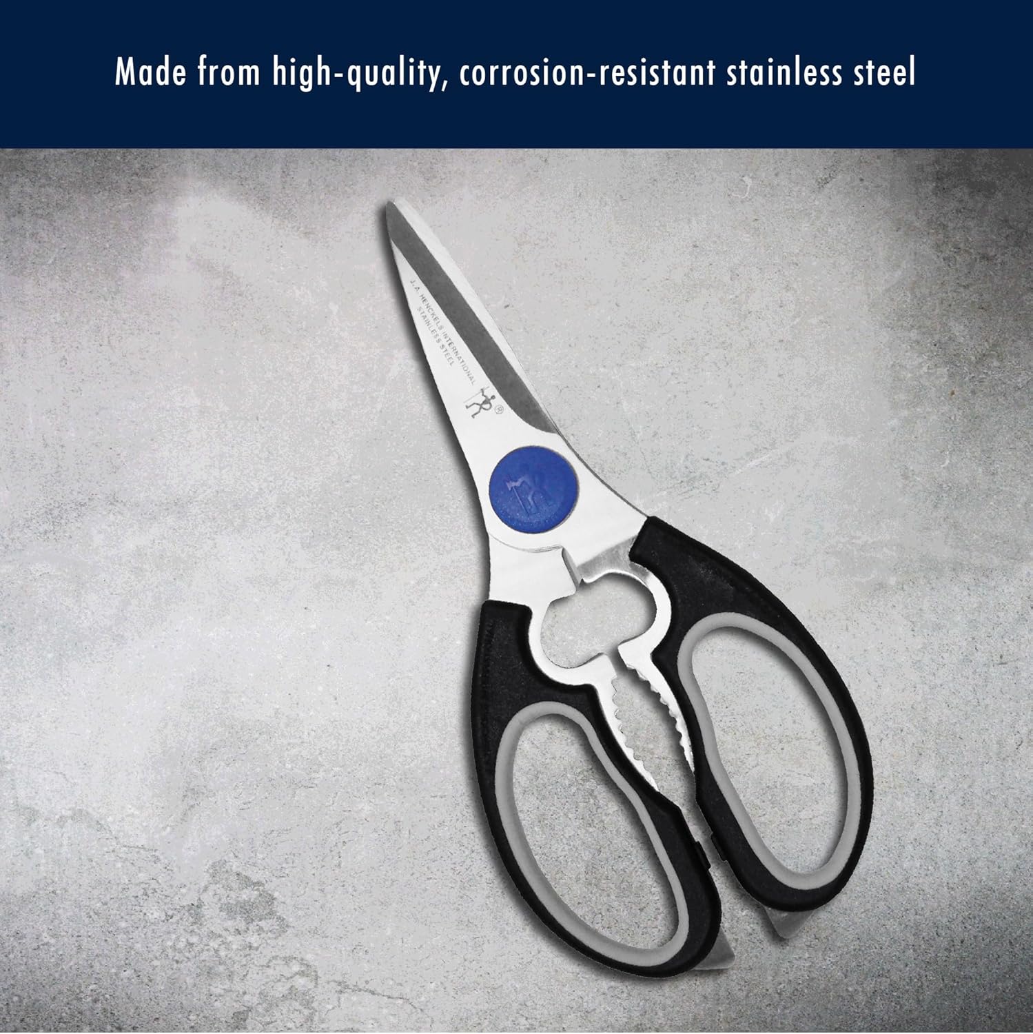 HENCKELS Heavy Duty Kitchen Shears Stainless Steel Black, Multi-Purpose Serrated Scissors That Come Apart