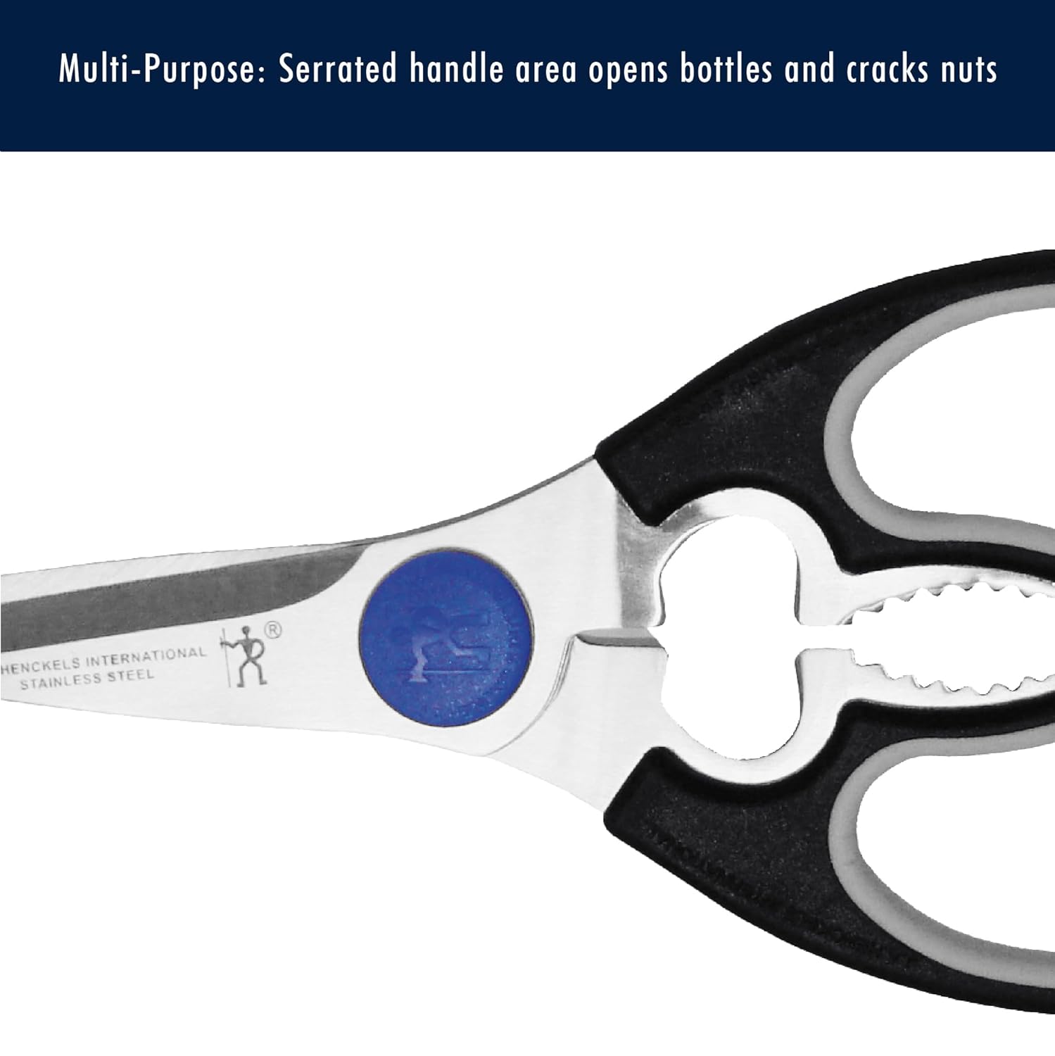 - MULTI-PURPOSE: Serrated center area in handle can open bottles, crack nuts