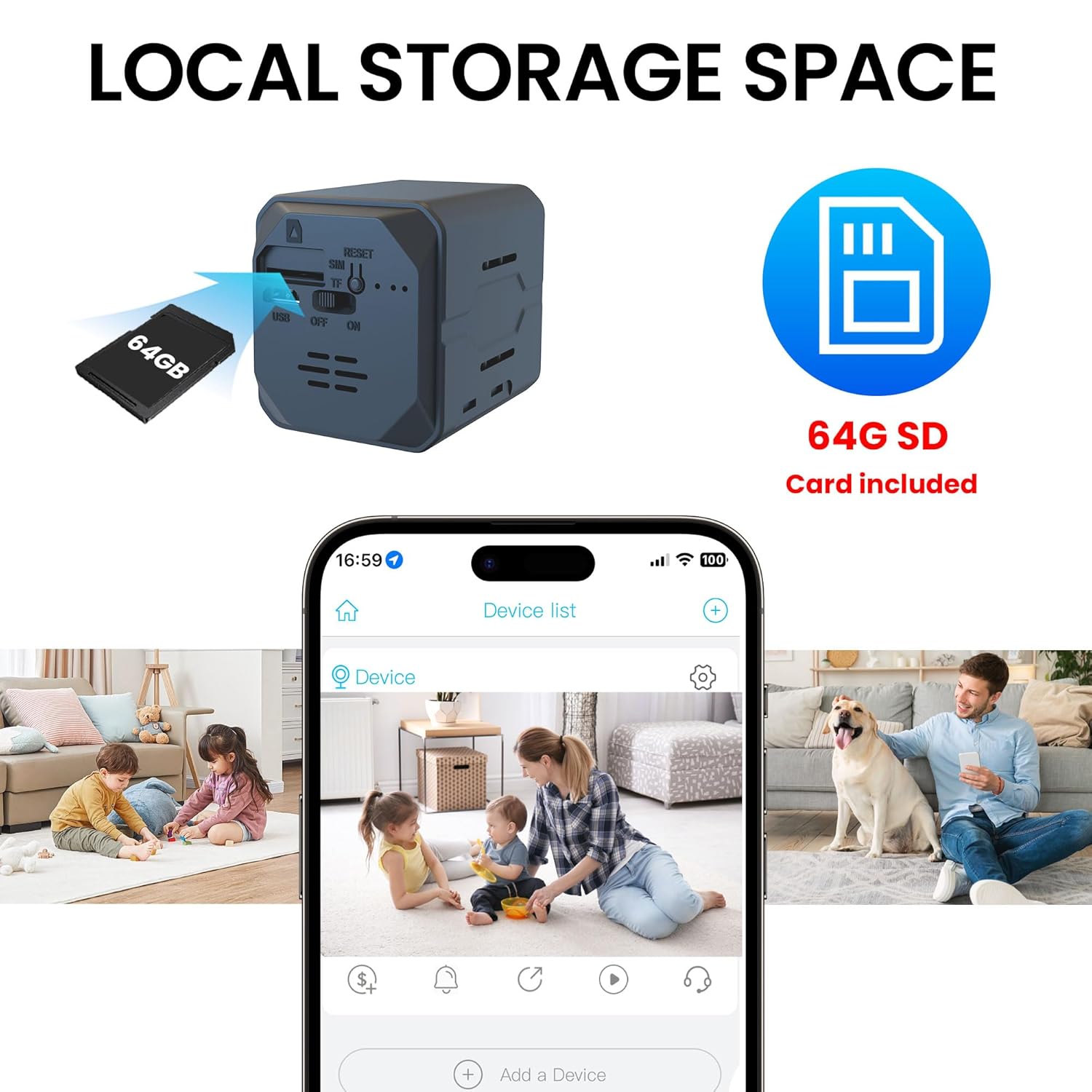 Hidden Spy Camera, 2K WiFi Mini Camera with 64G SD Card, 100 Days Standby Battery Life, Cloud & SD Storage, Clear Night Vision, AI Motion Detection, Real-Time Record Security…
