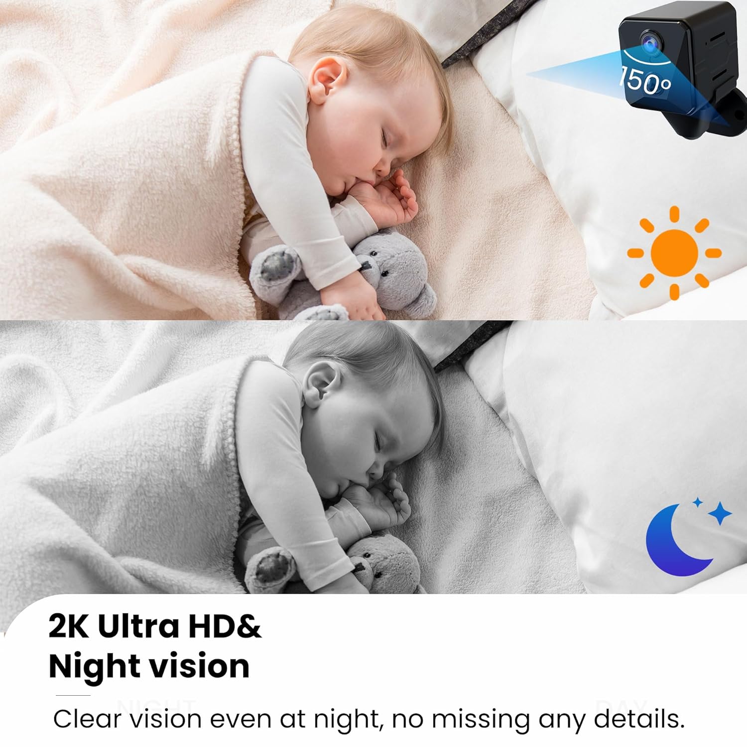 - [2K Resolution & Crystal Night Vision ]- Our cameras for home security provide a super clear 2k live stream which allows you to monitor your pets or babies in clear detail. With advanced night vision capabilities, it maintains clear visibility even in darkness, safeguarding your home and giving you peace of mind with a 150°Wide-Angle View and seamless Surveillance.