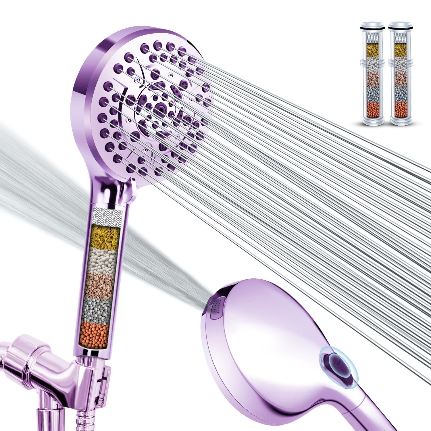High Pressure 10-Mode Handheld Shower Head - Built in Power Wash for Clean, Replaceable Filter Soften Hard Water Remove Chlorine, 60 Inches Hose, Overhead Bracket, Anti-Clog...