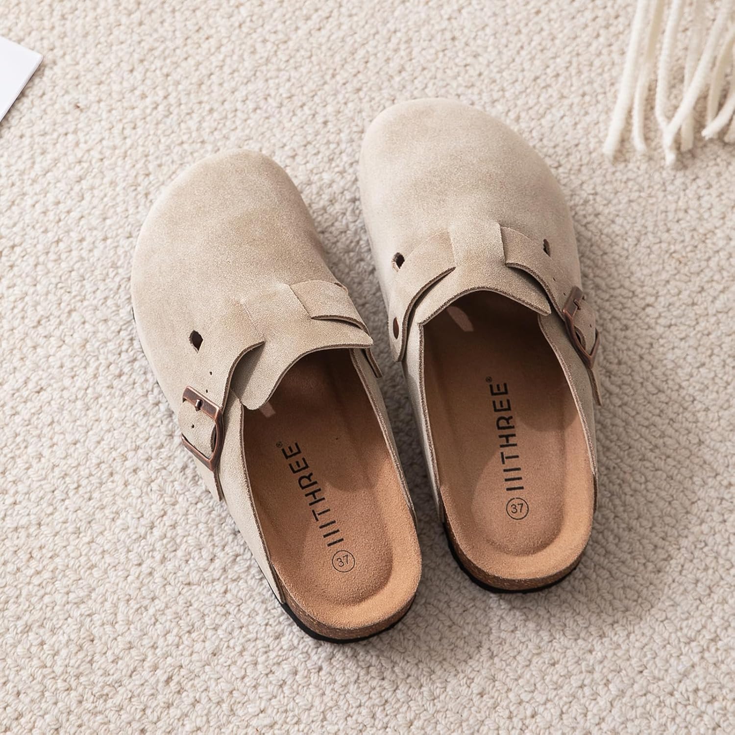 - 【Make Them Your Own】 IIITHREE women’s suede clogs offer a snug fit that will cradle your foot. Adjustable metal buckle allows you to adapt to the width of your foot. These slip-on clogs are easy to take on and off, while being extremely durable. Saves time and convenient.