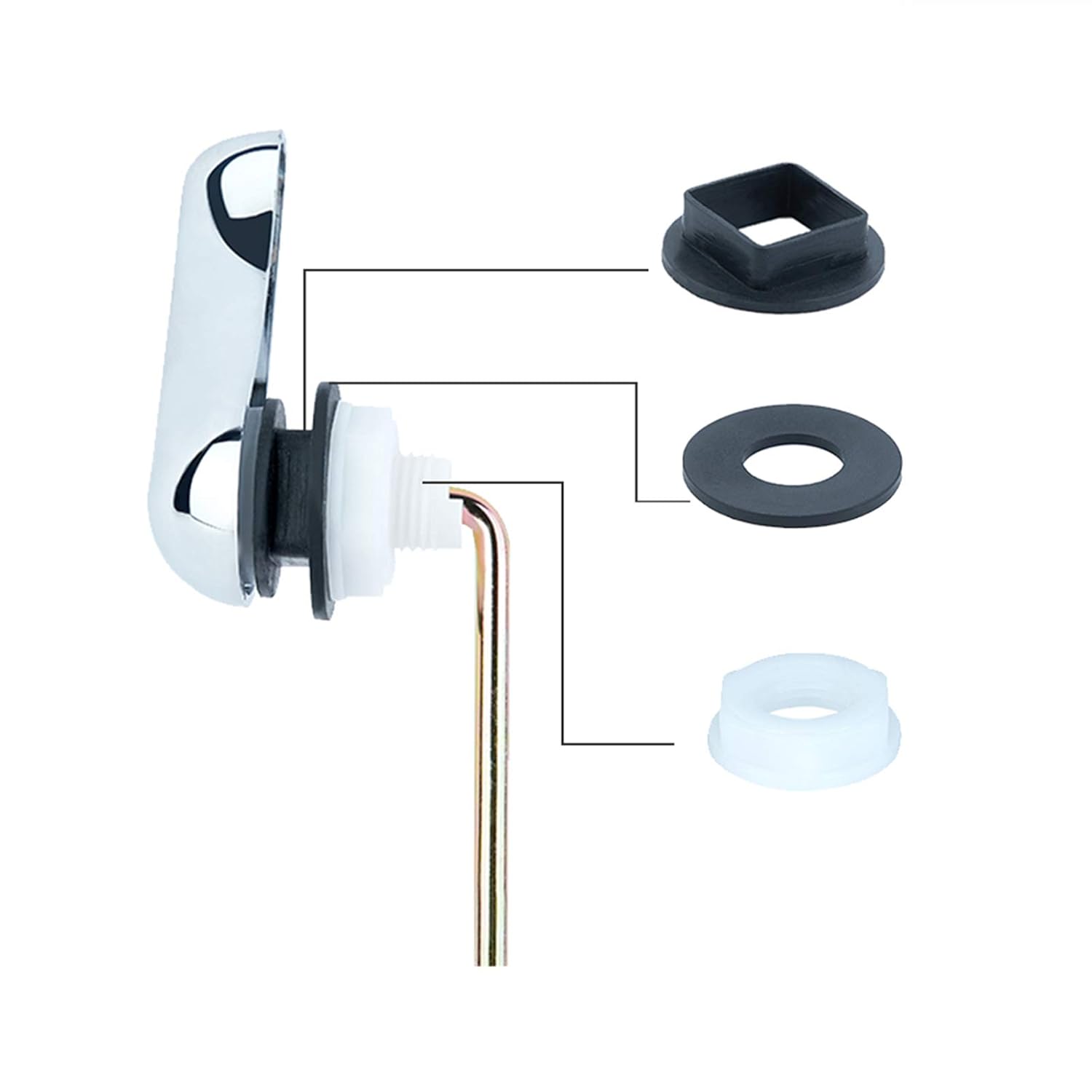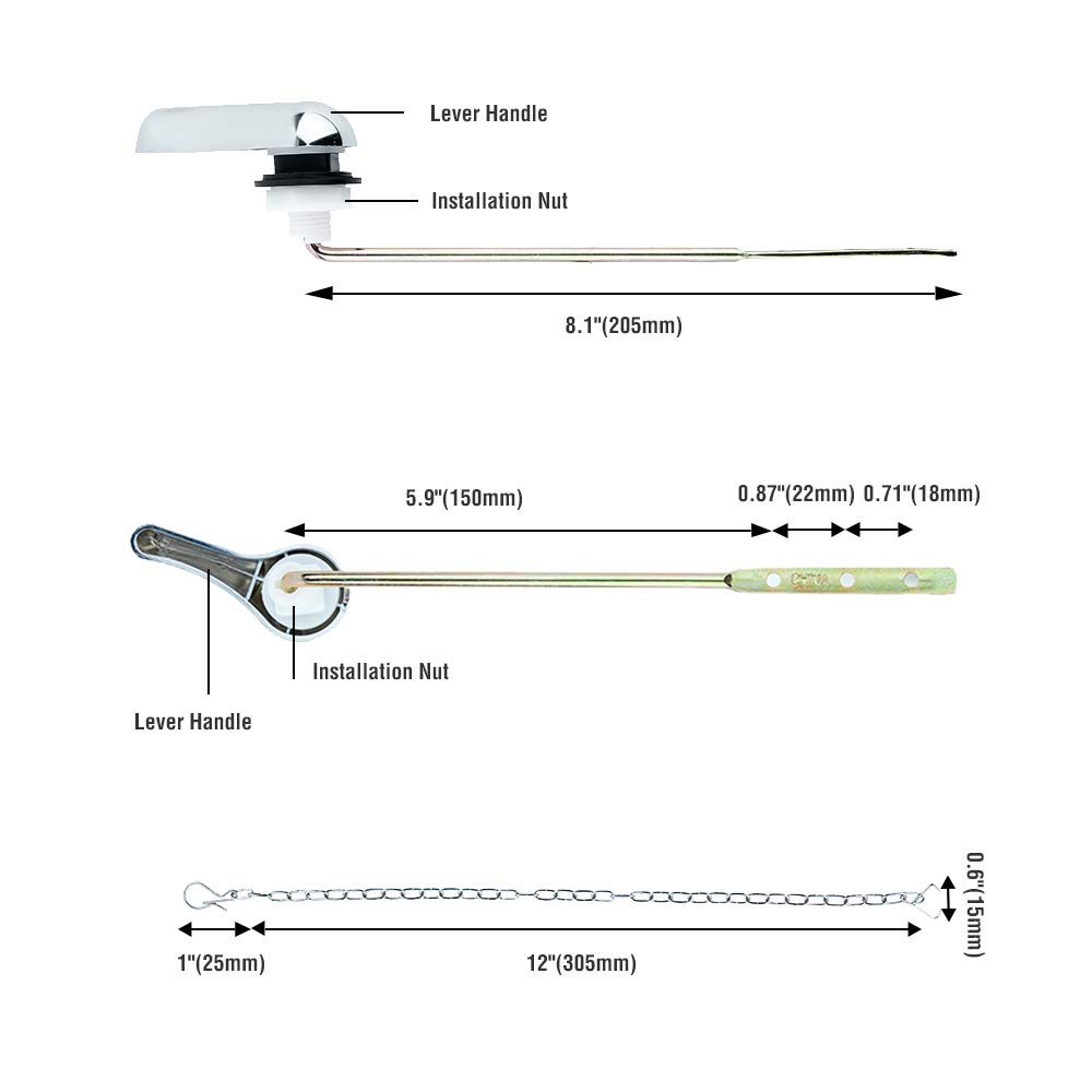 - DURABLE CONSTRUCTION – Built to last with a premium quality pre-drilled 8-Inch steel rod and chrome finish handle, it offers a durable design, easy to clean and maintain. Completed with plastic nut and rubber seal gasket, the trip lever can be installed effortlessly on existing toilet fixtures.
