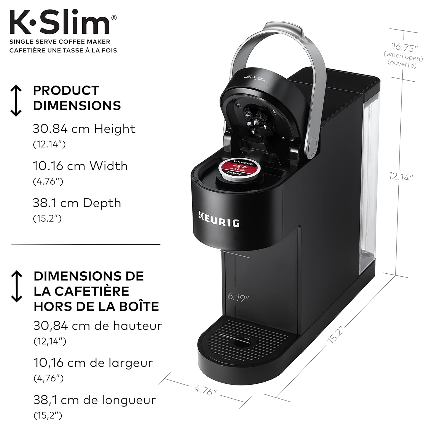 I really like the way it takes up a small space on my counter. It’s nice to have it come foward far enough lifting the handle to put in a Kcup doesn’t hit the cabinet, all the while taking up less space in my kitchen. The water tank is nice and easily refilled.