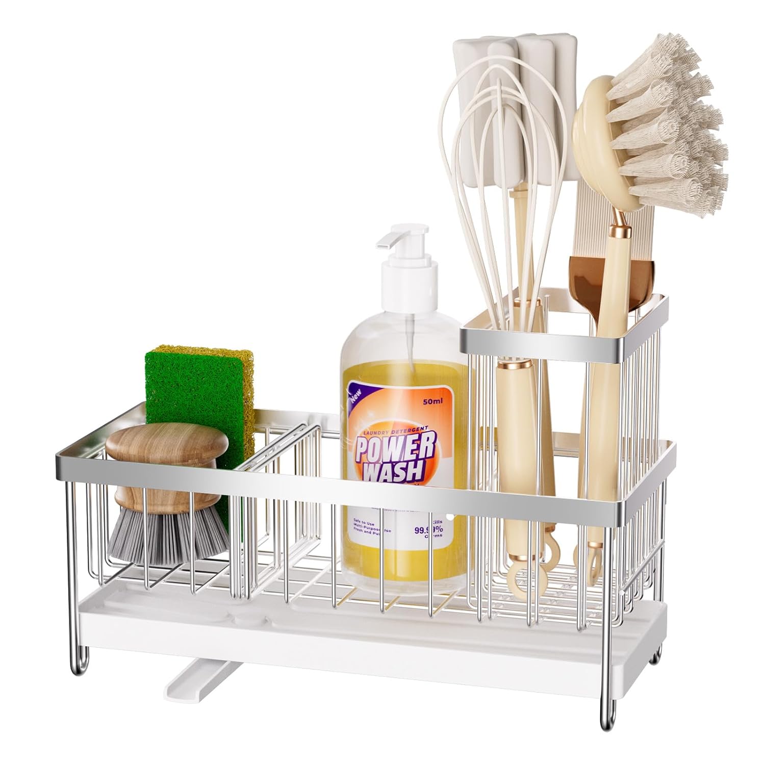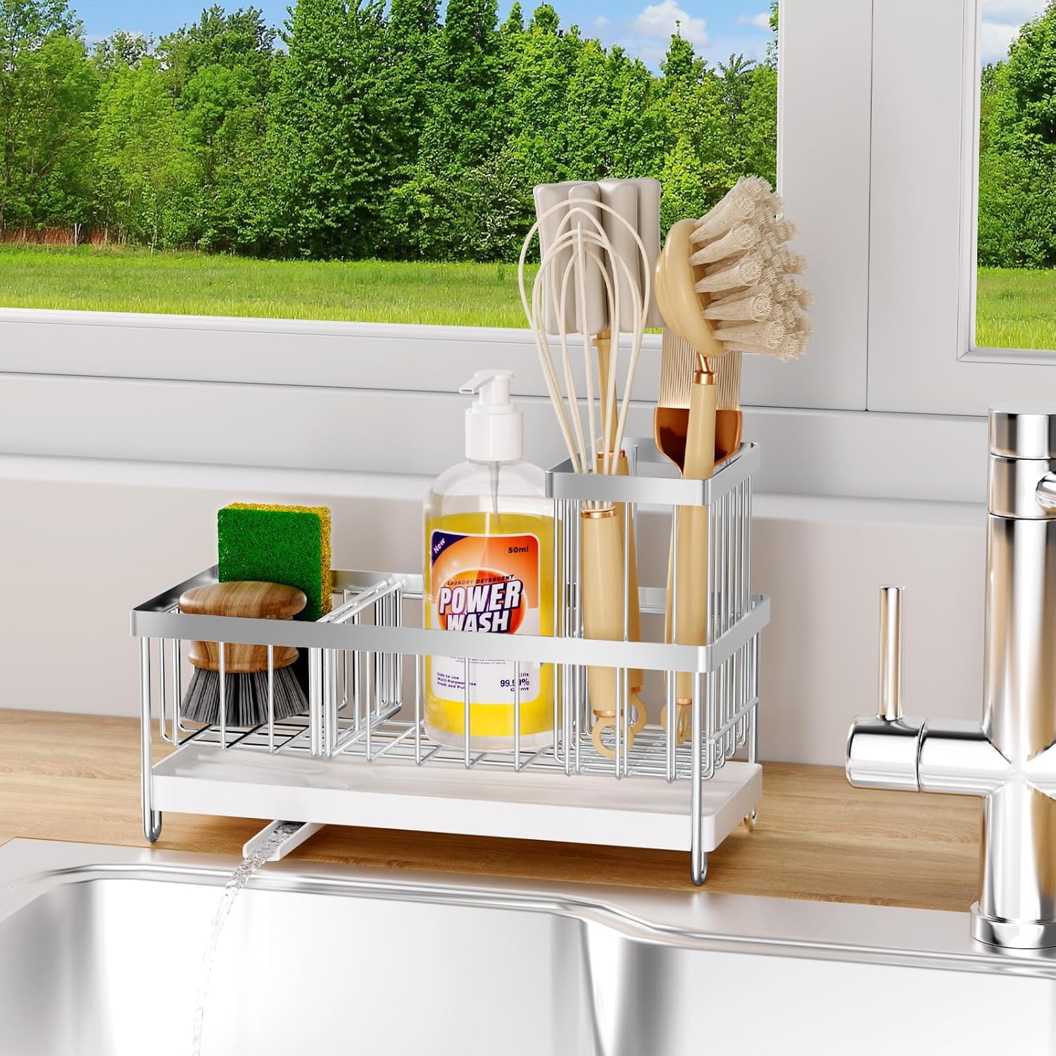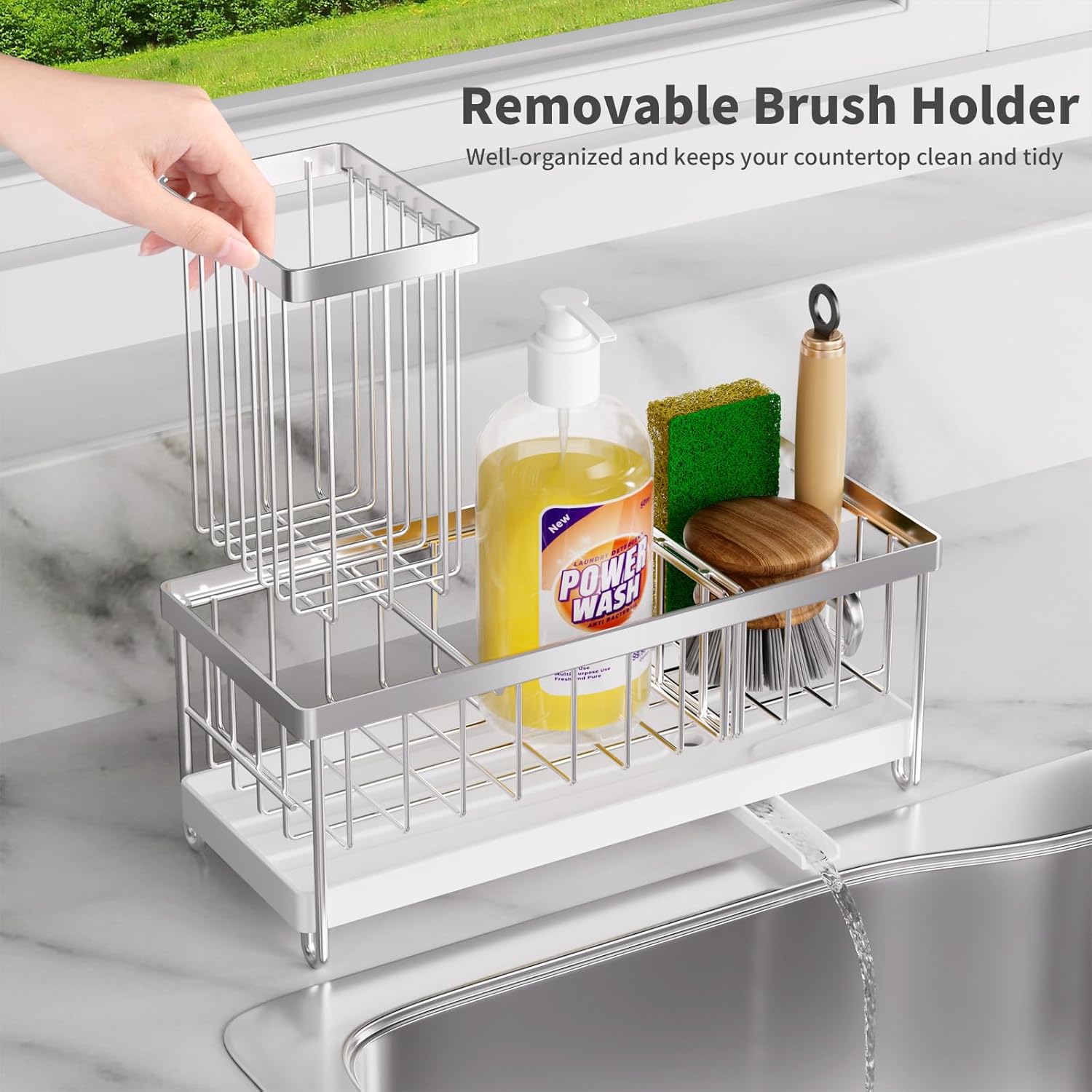 - 【Clean and Tidy Countertop Design】This kitchen sink organizer not only has practical functions, allowing for centralized storage of sponges, brushes, and dish soap to avoid clutter around the sink, but it also helps keep your countertop clean and tidy, adding more convenience to your cooking life.