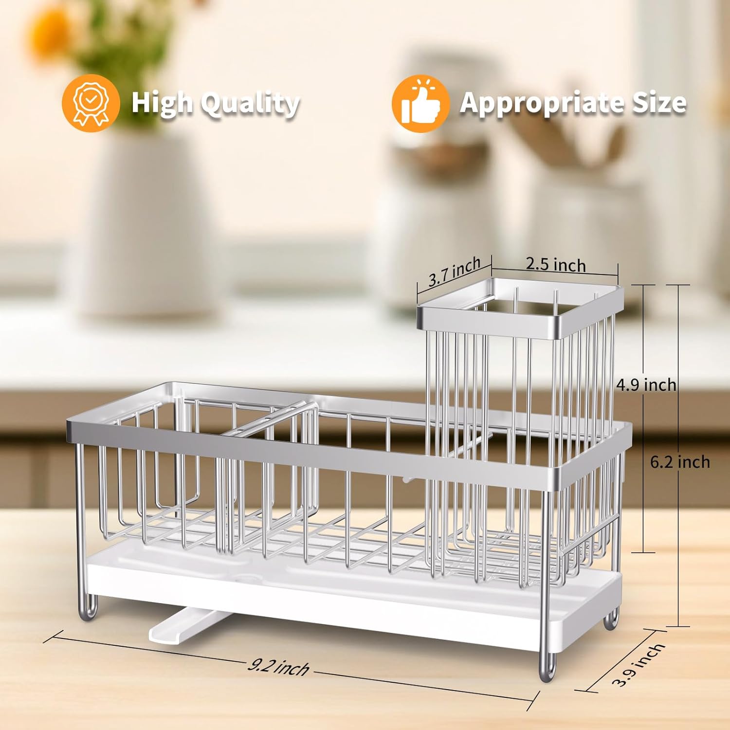 Fit perfectly above my sink, and I like the drain feature. The only that I would change is to make it a bit longer to fit more items.