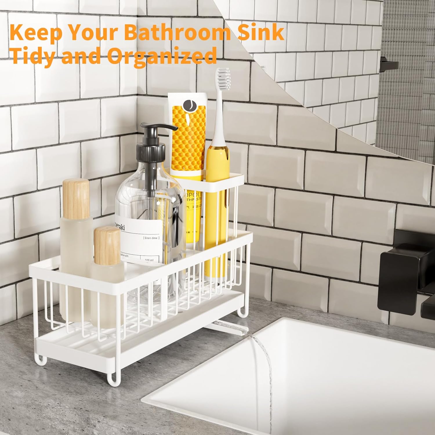 - 【Unique Adjustable Partition】The versatile divider system gives you the ability to customize the storage space to best suit your specific needs and preferences. By combining practical functionality and adaptable organization, this kitchen sink organizer provides a comprehensive solution for clutter in the sink area. It contributes to a well-organized and pleasant cooking environment.