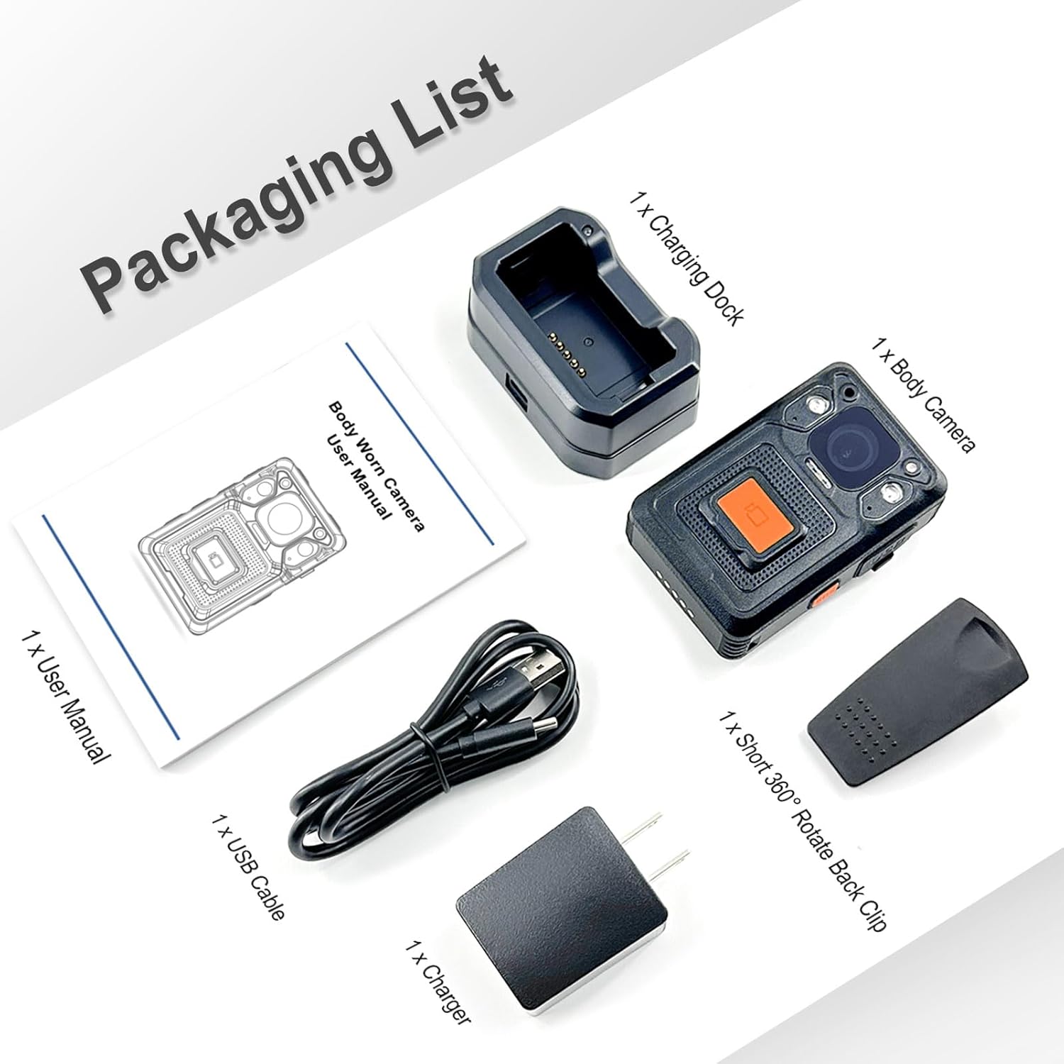 1 x 360° Rotation Short Back Clip ,1 x Charger Plug ,1 x USB Cable ,1 x Charging Dock ,1 x User Manual ,X1 Body Camera |