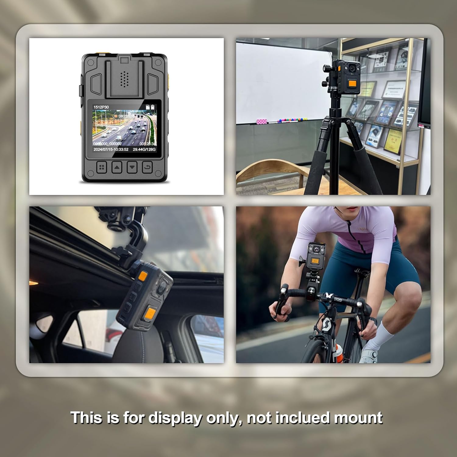 KP22 2.5K Body Cameras 128GB 1512P H.265 Night Vision 14H Video Recording 60FPS GPS Pre-Recording with Car Suction for Dash Cameras, Security, Law Enforcement