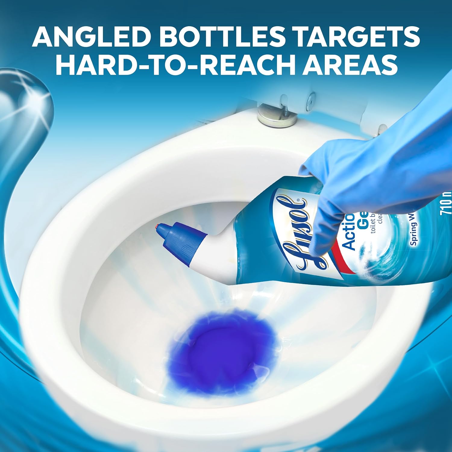 Lysol Toilet Bowl Cleaner, Action Gel, Spring Waterfall, For Cleaning and Disinfecting, Stain Removal, 8x Clinging Gel, 710ml