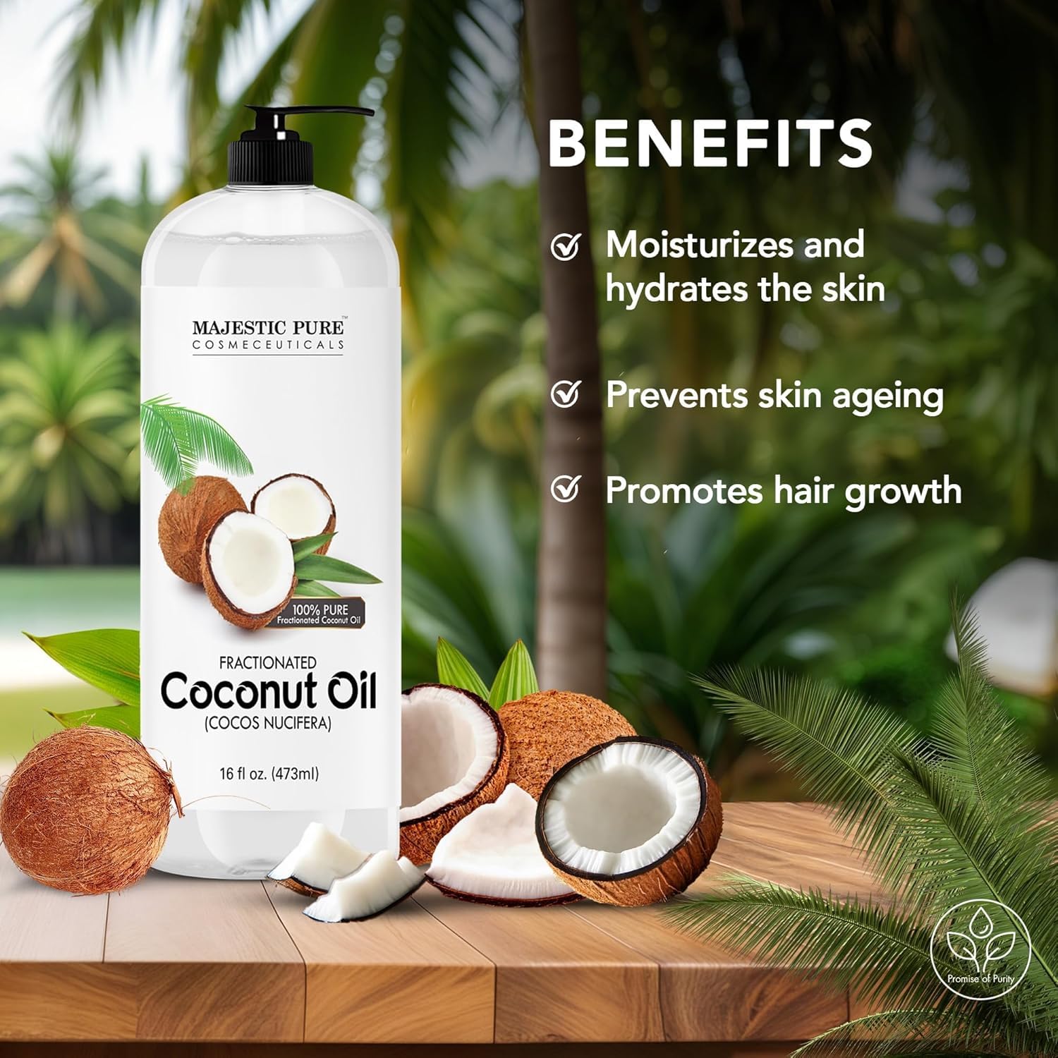 MAJESTIC PURE Fractionated Coconut Oil | Relaxing Massage Oil for Massage Therapy | Liquid Coconut Oil for Diluting Essential Oils | Coconut Oil for Skin, Lip, Body, Hair Oil,…