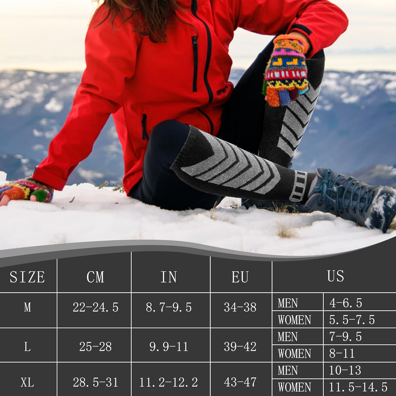 - Gift Choice: Our skiing socks are a great idea of Christmas gift / Birthday gift, elk and snowflake patterns, let you and your friend immersed in the world of winter skiing. It’s also very suitable for hiking, snowboarding, cycling and all kinds of winter sports,