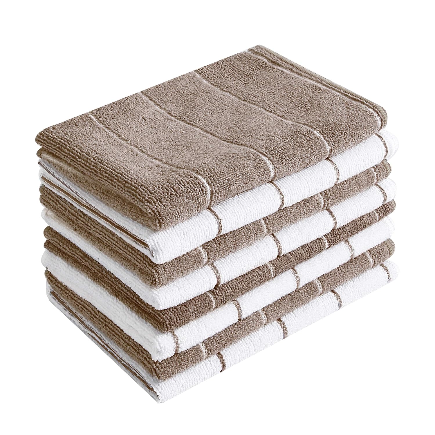 Microfiber Kitchen Towels - Super Absorbent, Soft and Solid Color Dish Towels, 8 Pack (Stripe Designed Brown and White Colors), 26 x 18 Inch