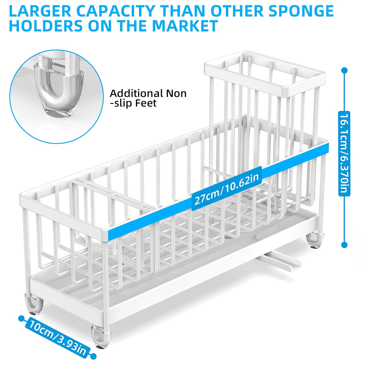 - Moforoco Larger Sponge Holder for Kitchen Sink, Sink Caddy with High Brush Holder, Kitchen Sink Organizer Countertop Rustproof 304 Stainless Steel, Kitchen Organizers and Storage Essentials