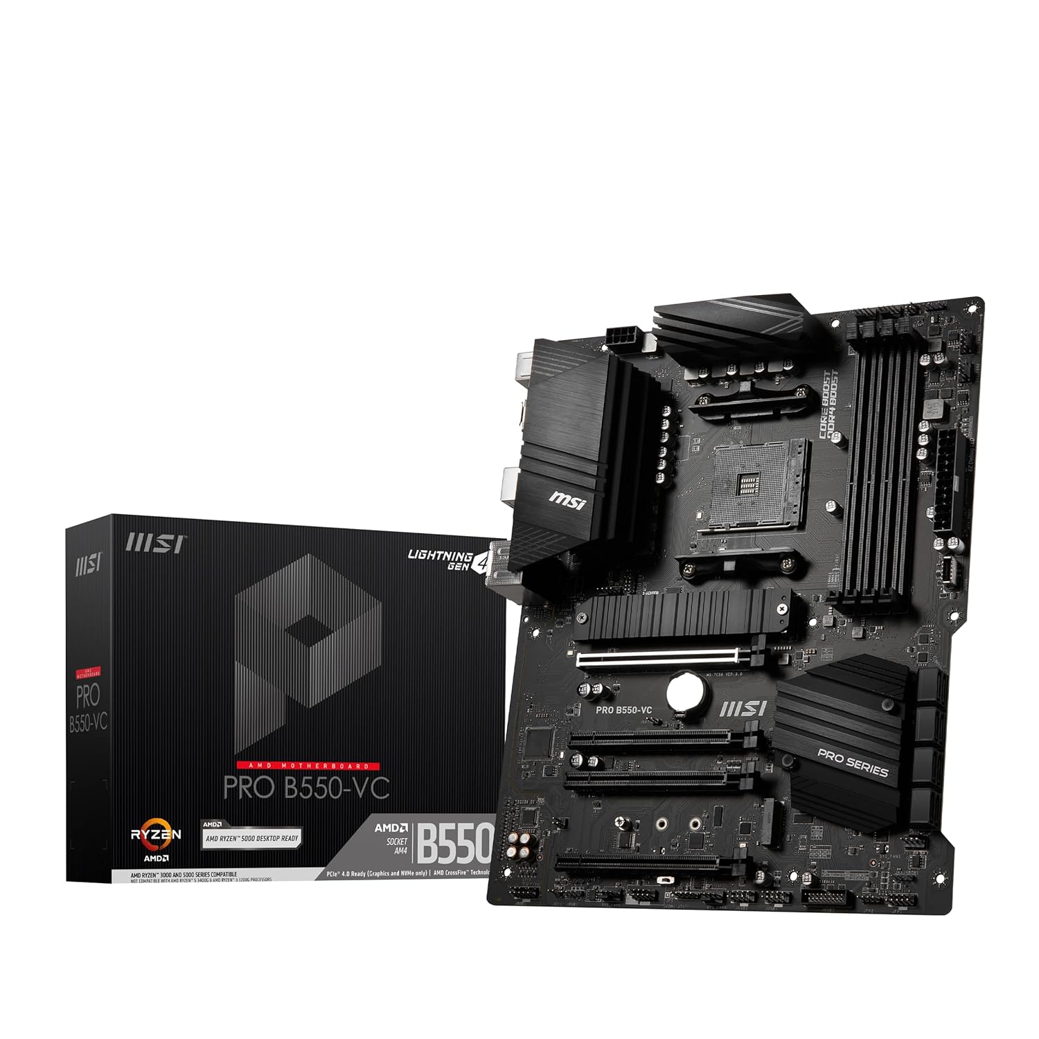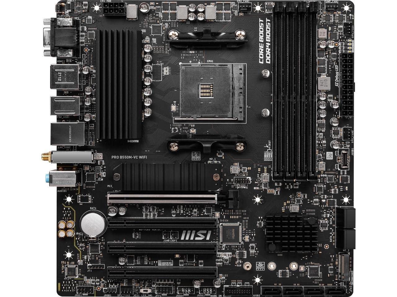 MSI PRO B550M-VC WiFi ProSeries Motherboard (AMD AM4, DDR4, PCIe 4.0, SATA 6Gb/s, M.2, USB 3.2 Gen 2, HDMI/DP, Wi-Fi, mATX)