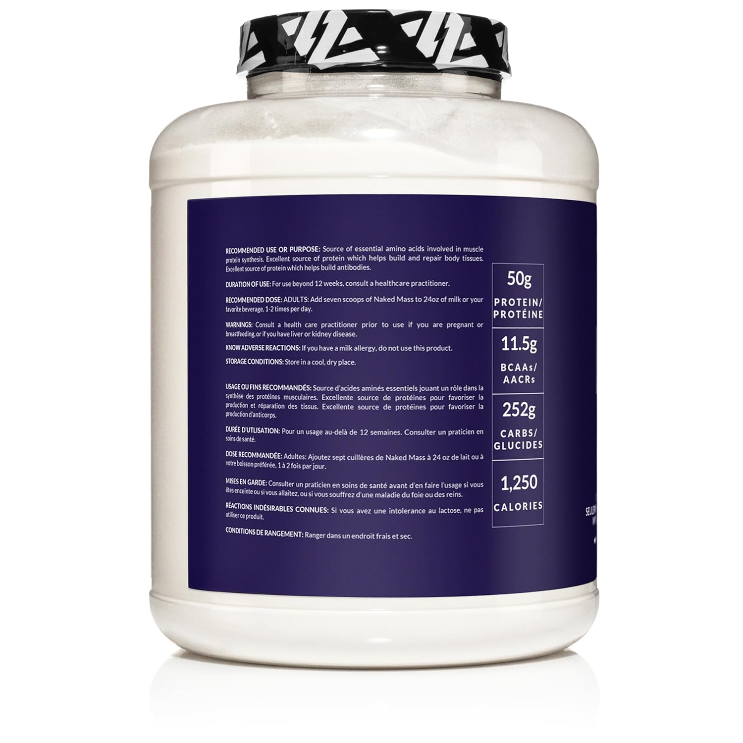 - MAXIMUM NUTRITION: 50g of Protein, 252g of Carbs, 1,250 Calories, 11.5g of BCAAs (branched-chain amino acids) per serving and only 5g sugar.