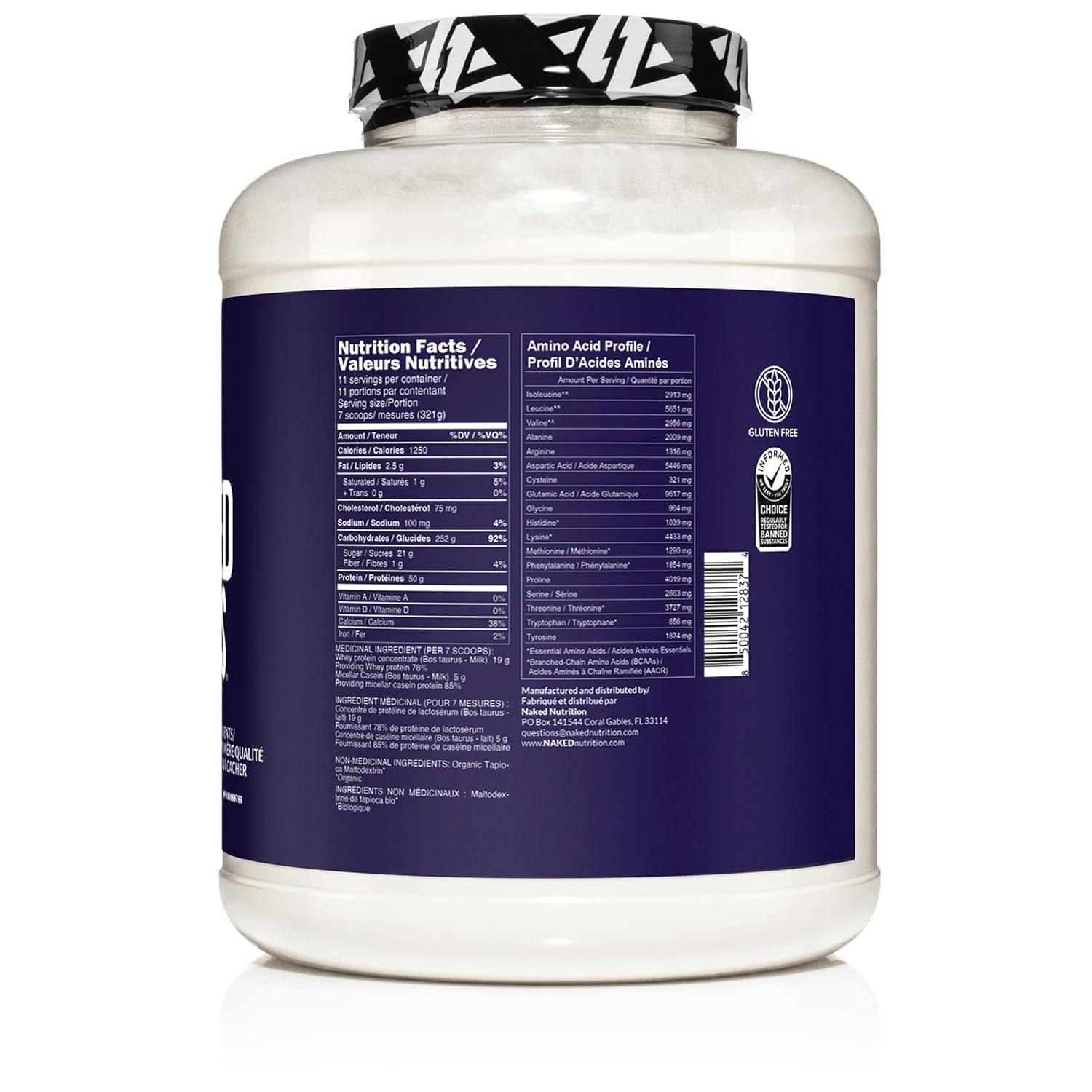 - ONLY THREE INGREDIENTS: Naked Whey, Naked Casein and Organic Maltodextrin (made from gluten free organic tapioca). Naked Mass contains no artificial sweeteners, flavors, or colors and is GMO Free, No rBGH or rBST, Soy Free and Gluten Free.