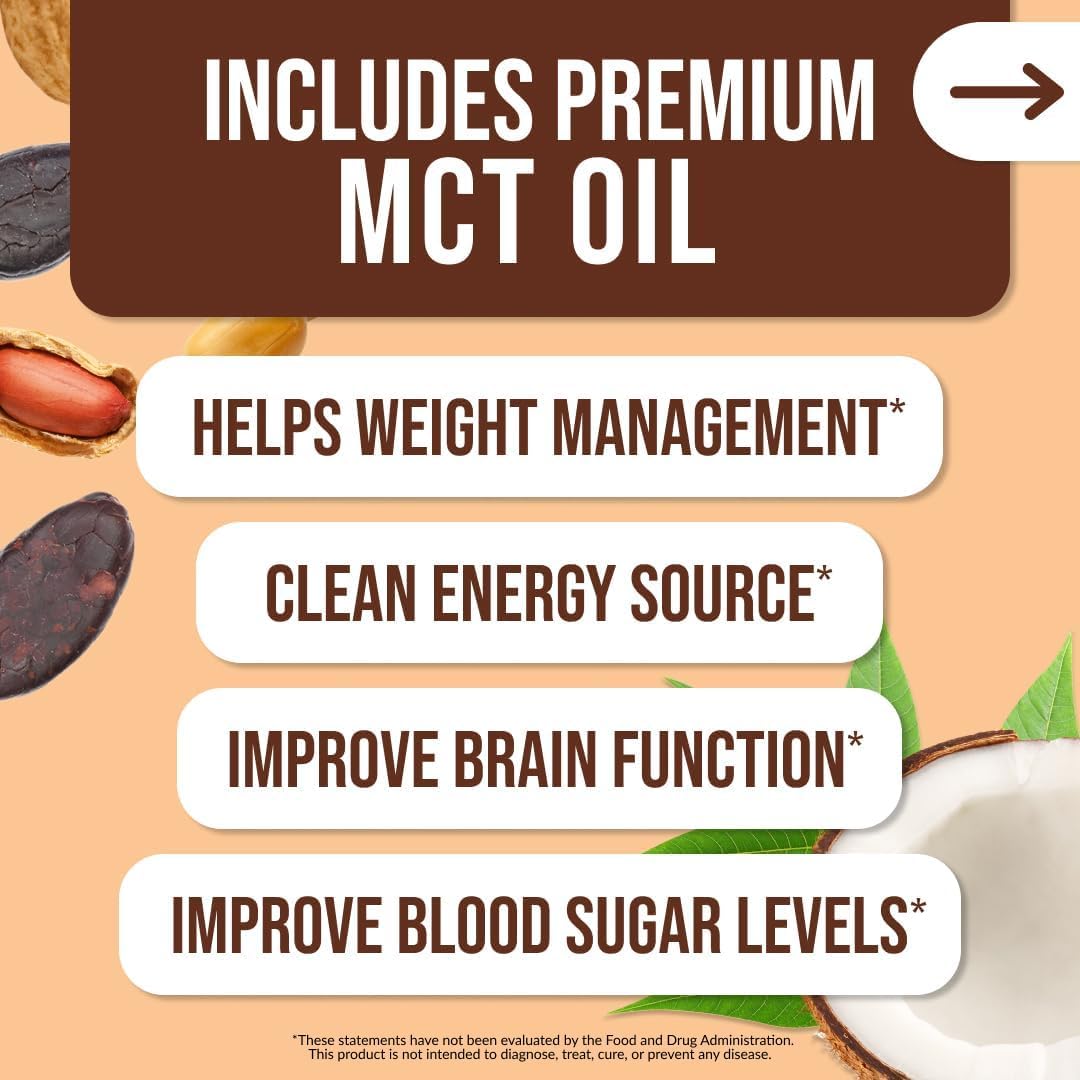- SUPPORTS WEIGHT MANAGEMENT: Added MCT oil helps boost satiation and energy supply, with cocoa and roasted peanuts giving Naked Shake it’s delicious flavor. No artificial flavors, sweeteners, or colors.