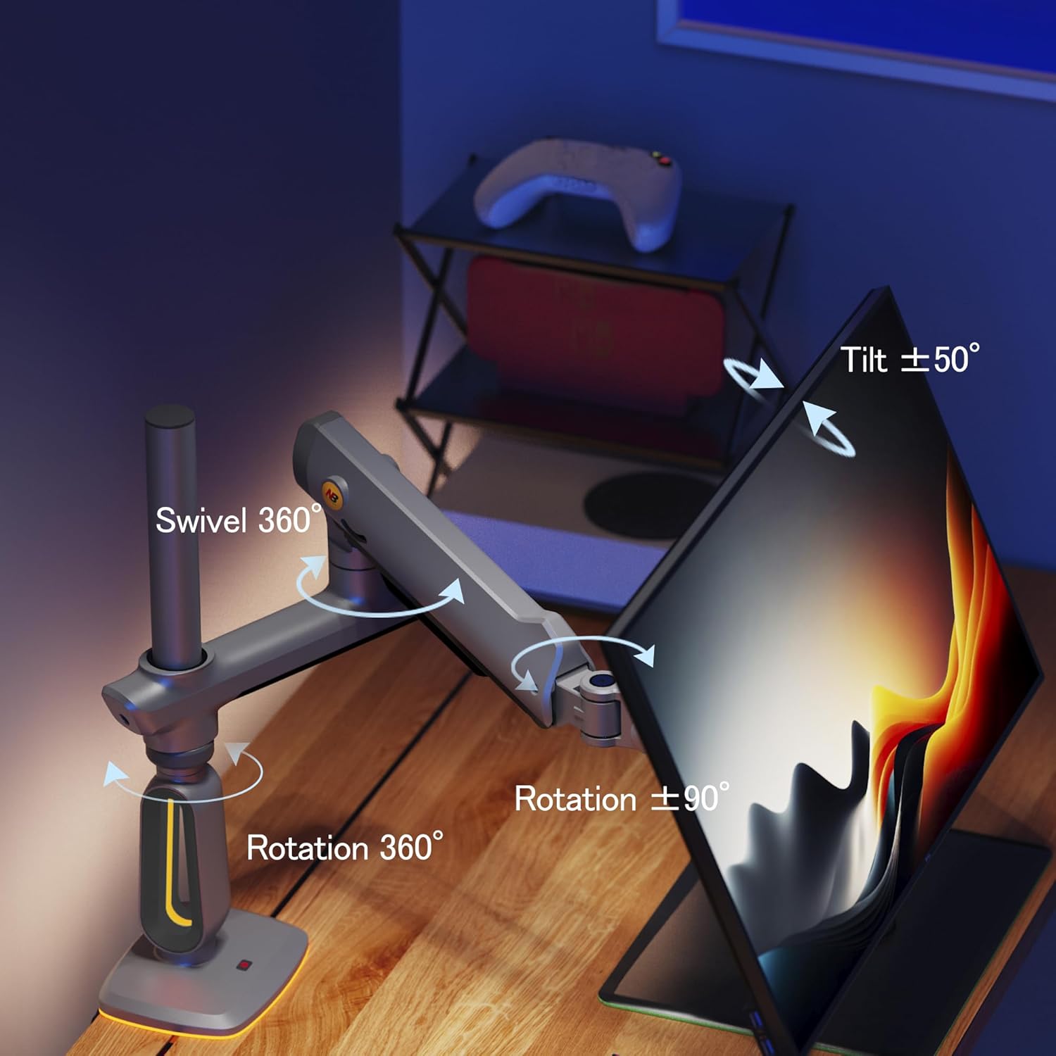 8 reviews for NB Extra Height Gaming Monitor Arm for 32 to 60 Inches Screen, Load up to 20 kg, VESA 75/100, RGB-Light, Heavy Duty, Multi Angle Adjustable, Premium Aluminum, Long Arm Extension…