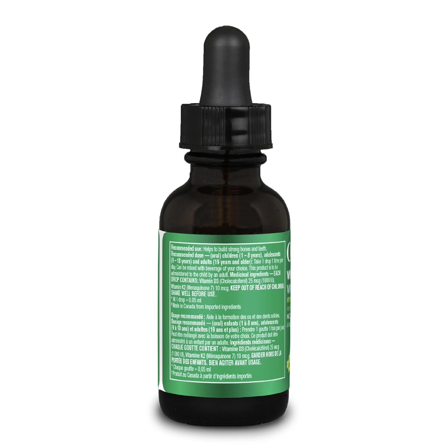 Organika Vitamin D3 + K2 (MK7) Liquid Drops – 1000 IU D3 & 10 mcg K2 per Drop – High Potency Formula to Support Strong Bones, Teeth & Immune Health –600 day Supply- 30 ml