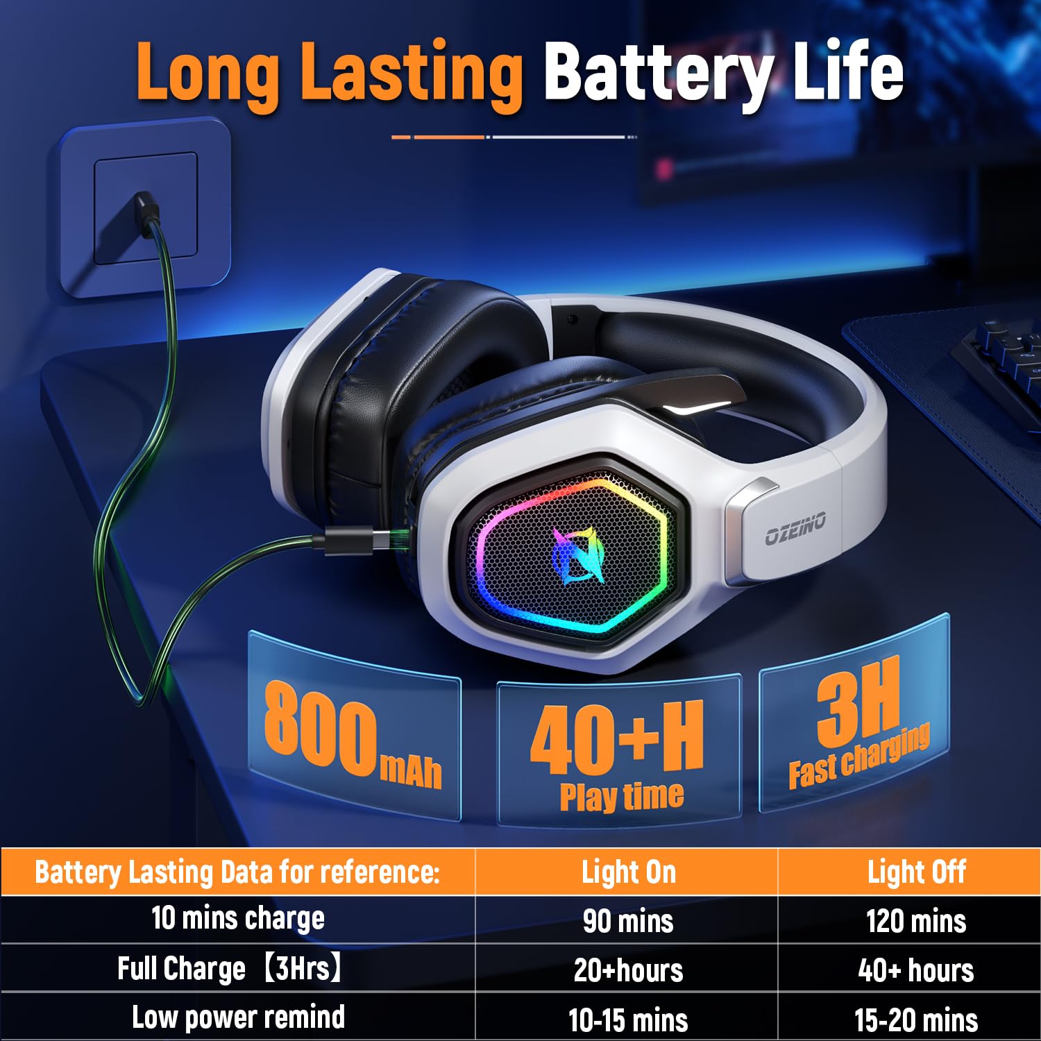 Ozeino Wireless Gaming Headset for PC, Ps5, Ps4 -USB & Type-C Ultra Stable Bluetooth 5.3 Gaming Headphones with Flip Microphone, 40+Hr Battery Gamer Headset for Switch, Laptop,...