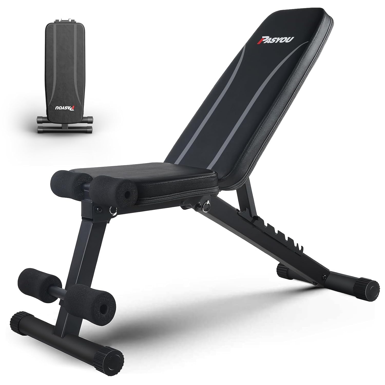 PASYOU Adjustable Weight Bench Full Body Workout Multi-Purpose Foldable Exercise Workout Bench for Home Gym Incline Decline
