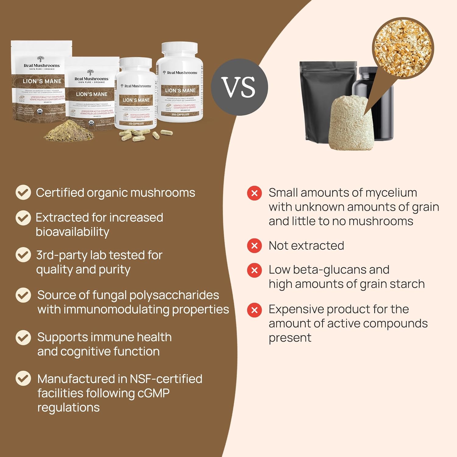 Real Mushrooms Lions Mane Capsules – Organic Mushroom Extract With Immunomodulating Properties Antioxidants Vegan Brain Supplement, 120