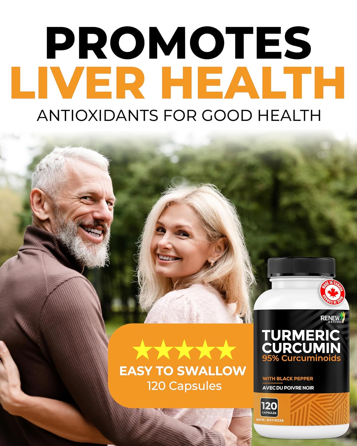 RENEW ACTIVES Turmeric Curcumin – Ultra Potent 95% Curcuminoids with BioPerine Black Pepper for Maximum Absorption – Supports Joint Health, Mobility, Digestion & Liver – Made in…