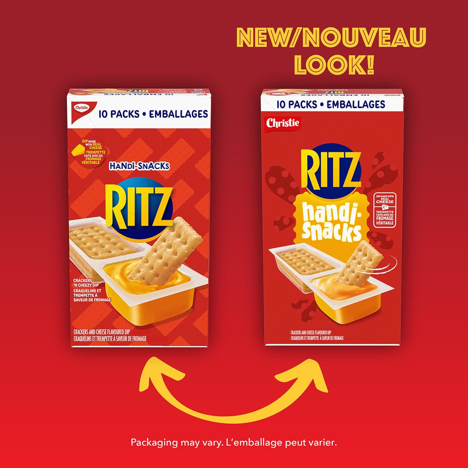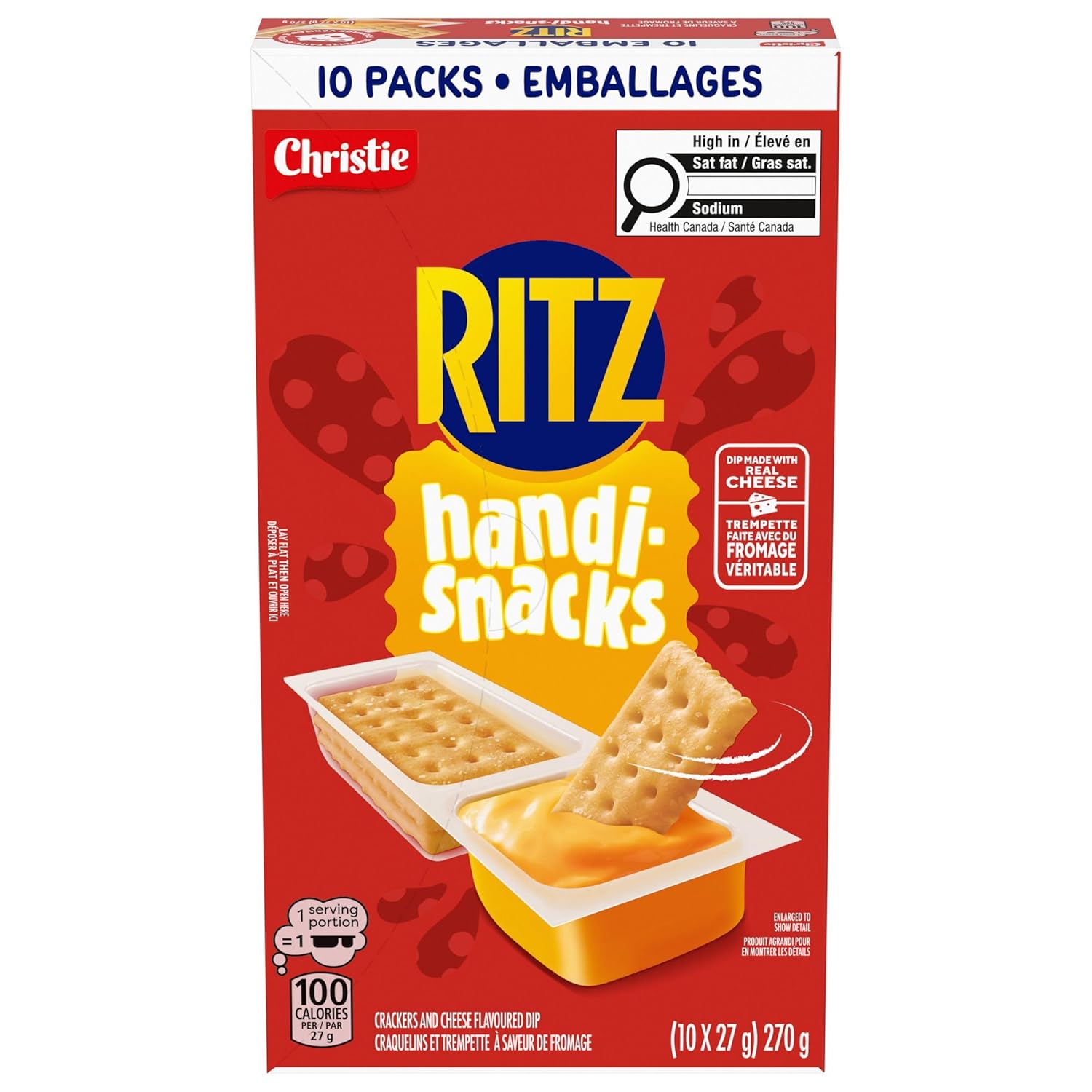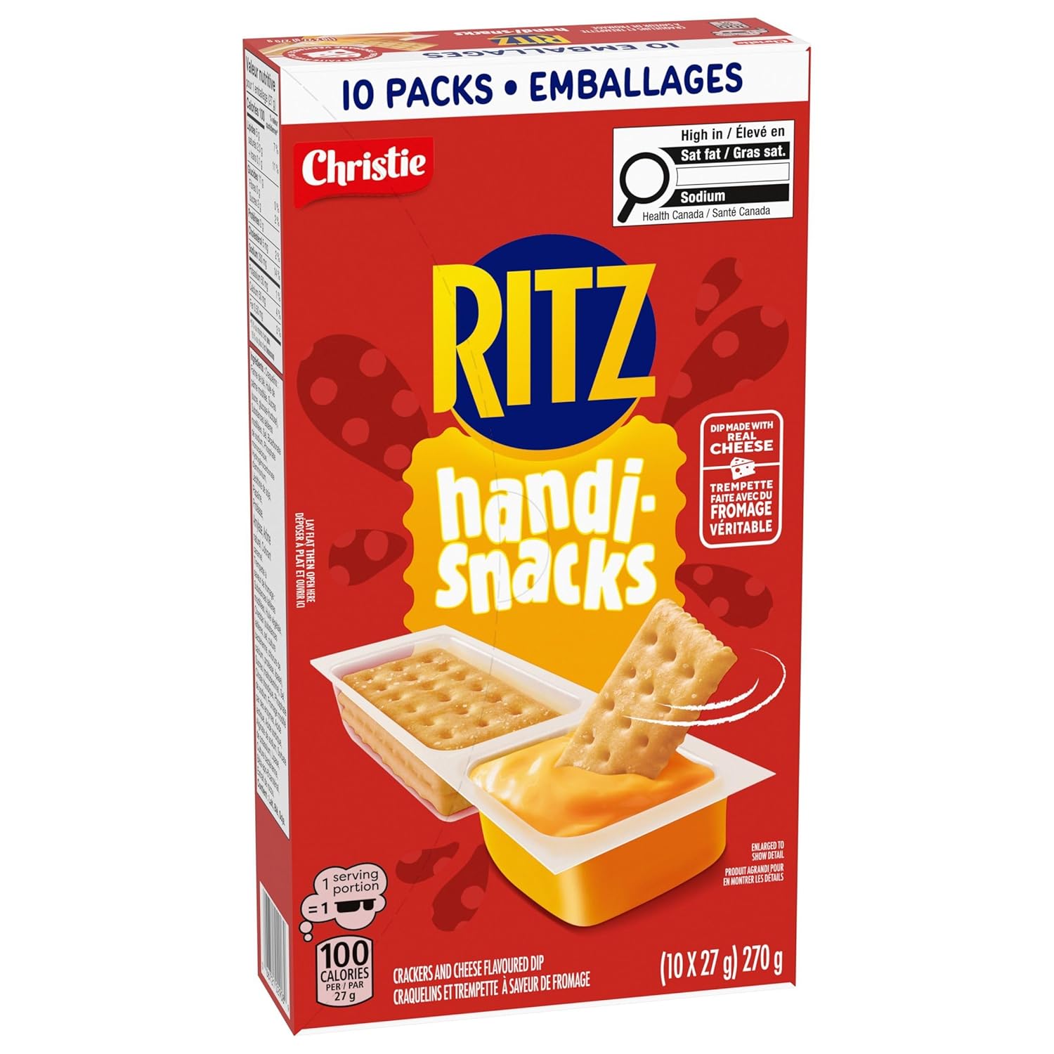 - One box with 10 packs of Handi-Snacks RITZ Crackers and Cheese Dip Snack Packs