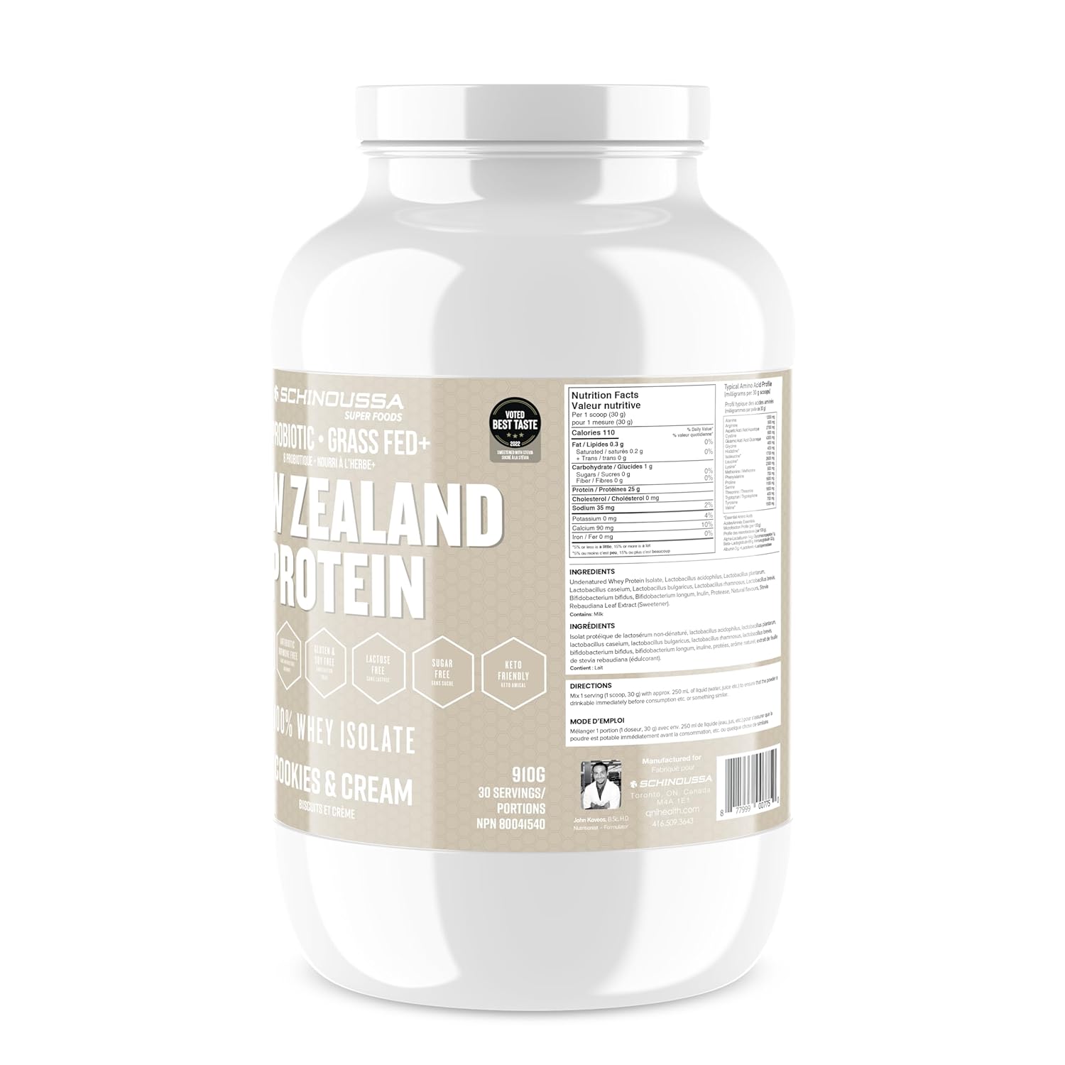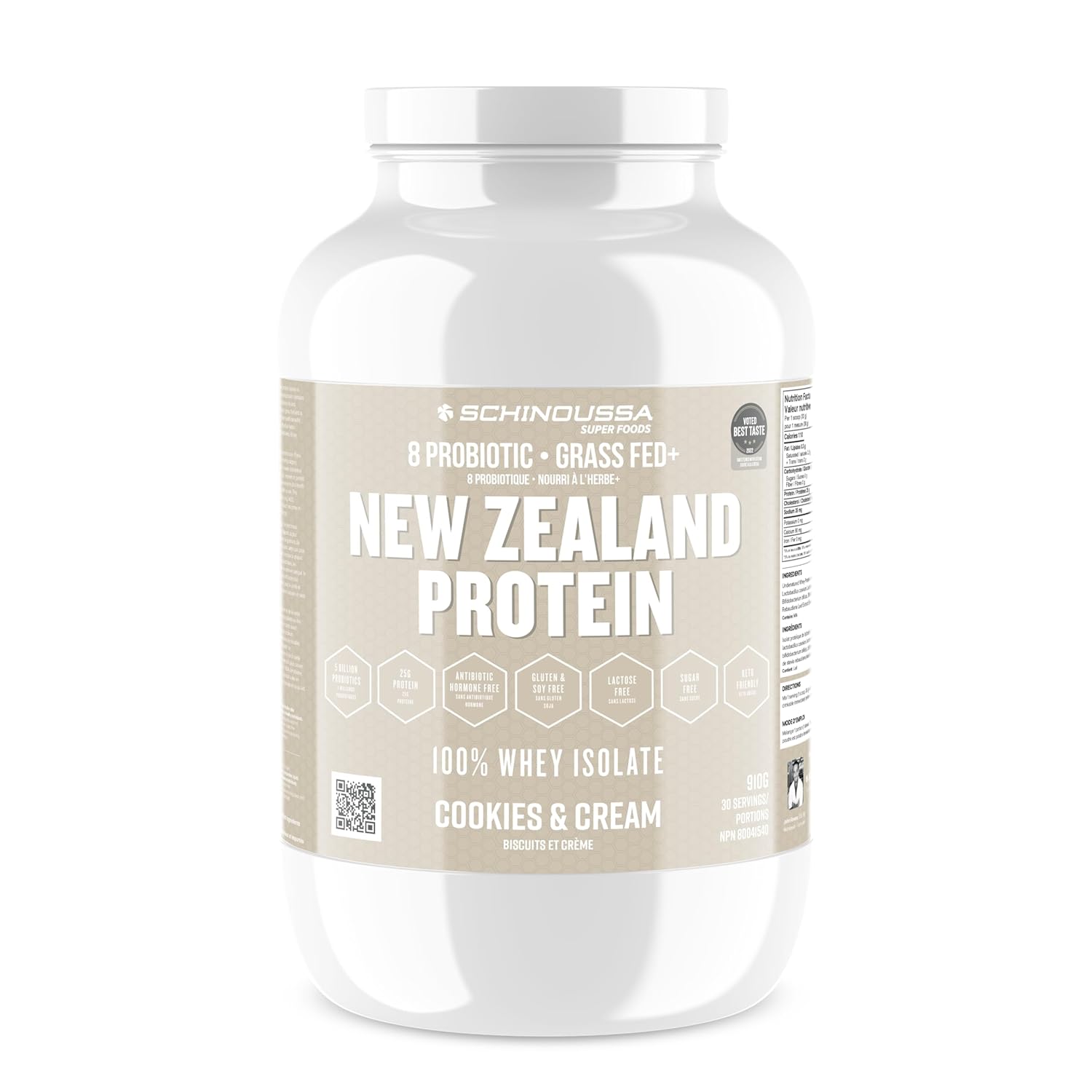 Schinoussa Super Foods New Zealand Whey Protein Isolate | 25g Protein | 0g Of Sugar | 1g Of Carbs| 110 Calories (Cookies & Cream, 910 g (Pack of 1)