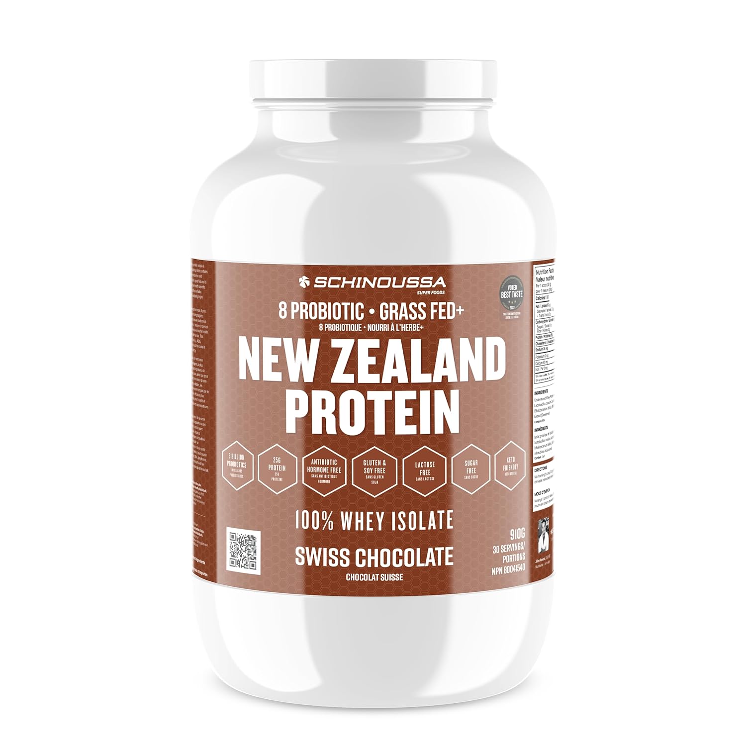 - High Protein Content: Schinoussa New Zealand Whey Protein Isolate provides a generous 25g of protein per 30g serving, fueling your muscles and supporting muscle growth, repair, and recovery.