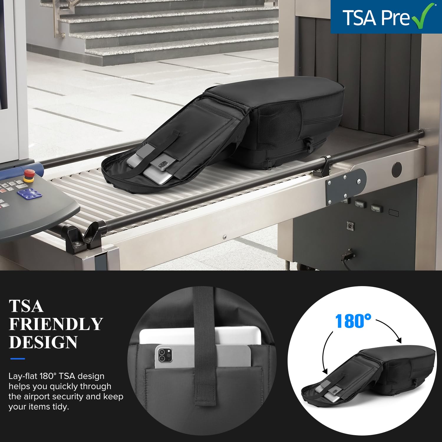 - TSA Friendly Travel Backpack: Designed for air travel, this TSA-friendly backpack can be opened 90 – to 180 – degrees at airport security, letting your laptop stay flat in its compartment without removal, thus simplifying the security check process.