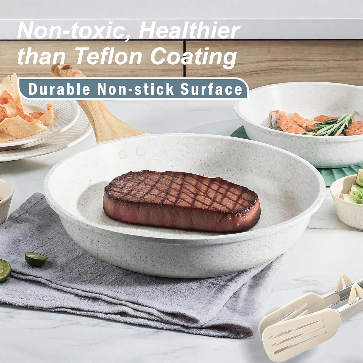 - ✔ Durable & Safe Nonstick Coating – PFOA- and PFOS-free granite nonstick surface ensures effortless food release and easy cleanup while being safe for your family.