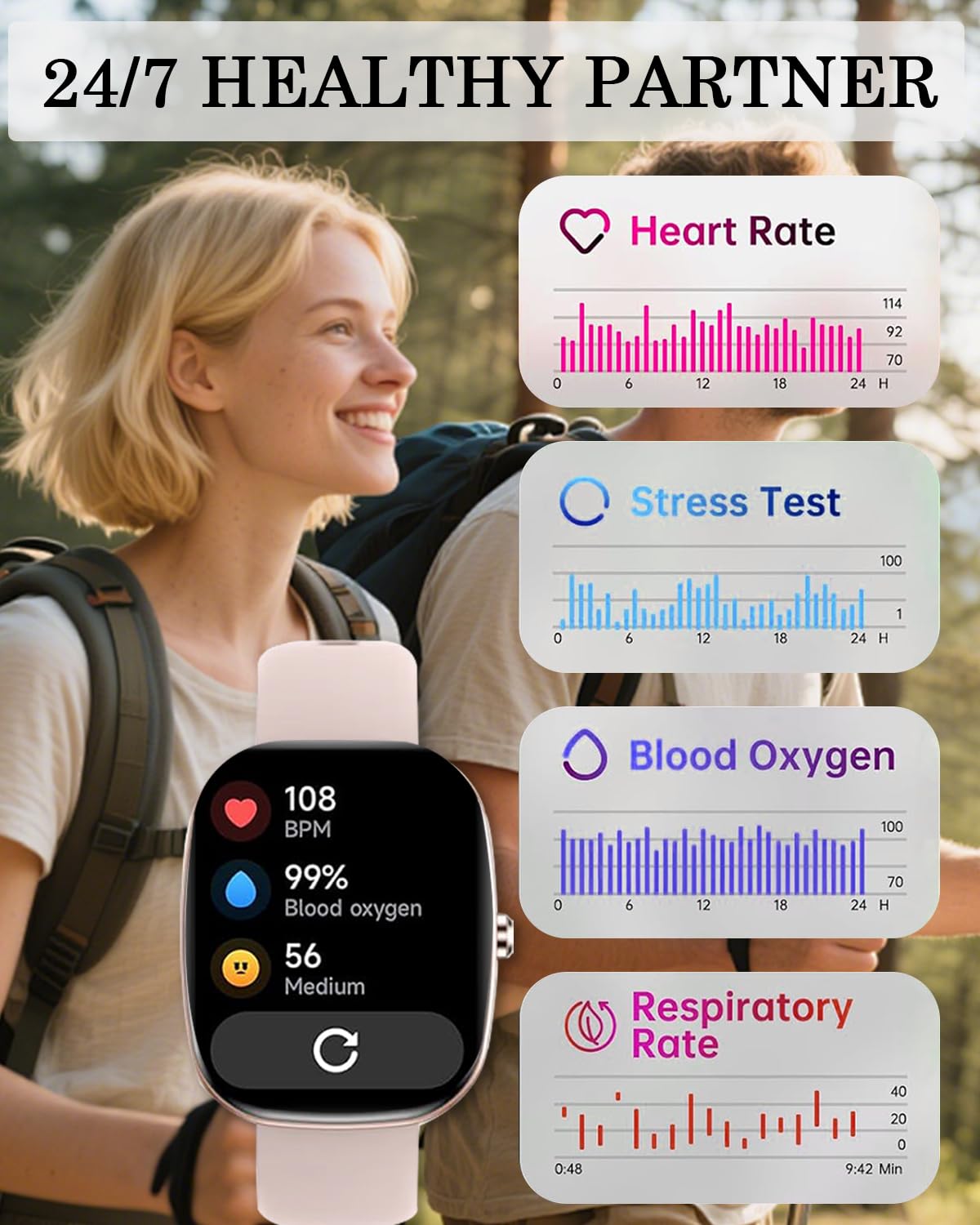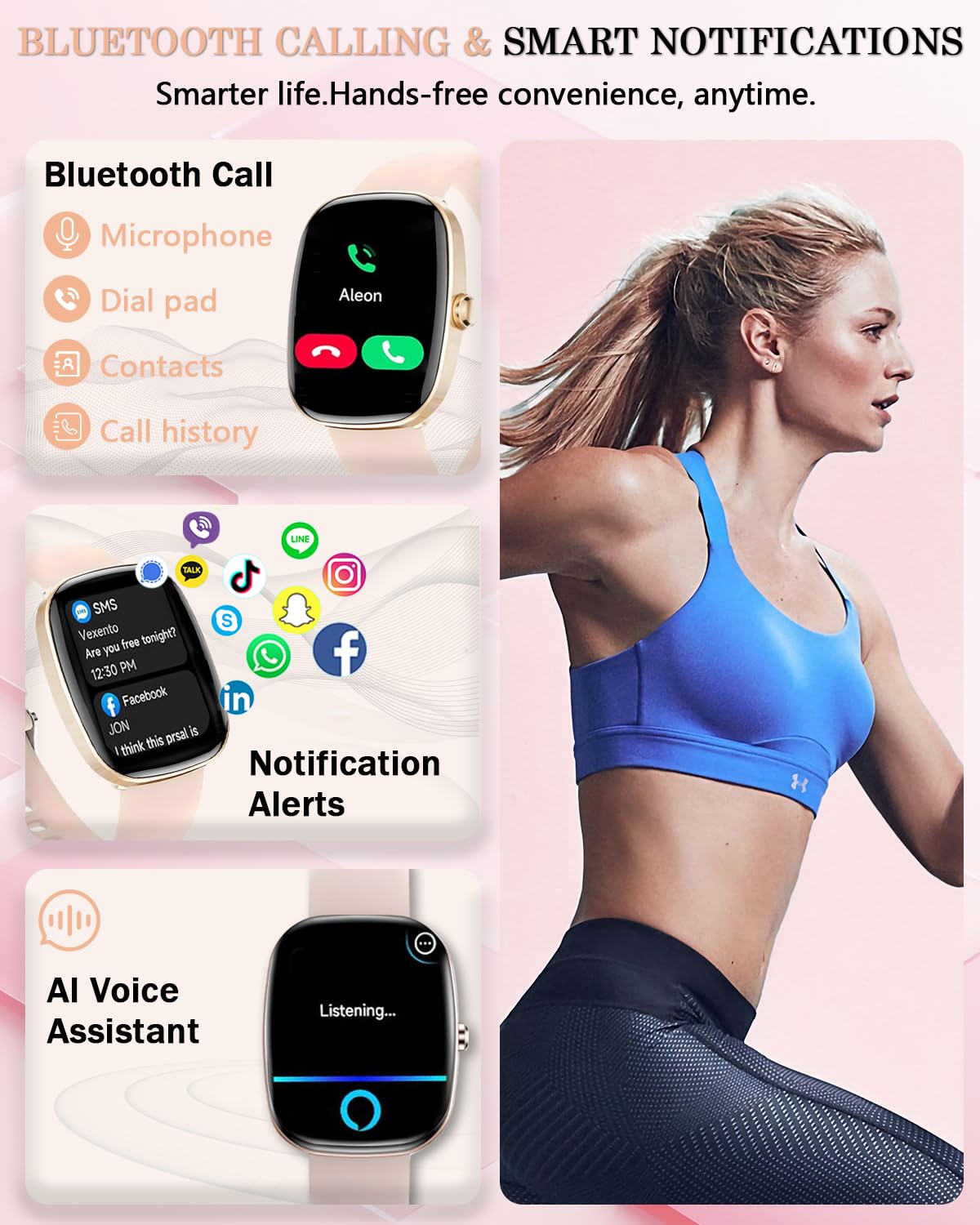- [Bluetooth Calling + AI Voice Control] Our Sport fitness watches apply Bluetooth 5.3 ensures zero-latency calls with voice dialing/call history access. Dedicated button activates Siri/Google Assistant for hands-free smart home control, music switching, and real-time weather updates directly from your wrist.