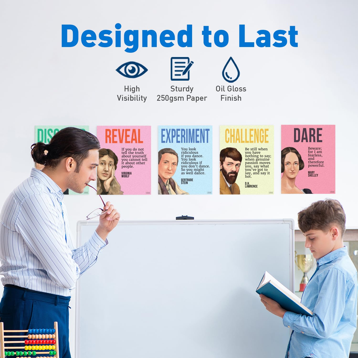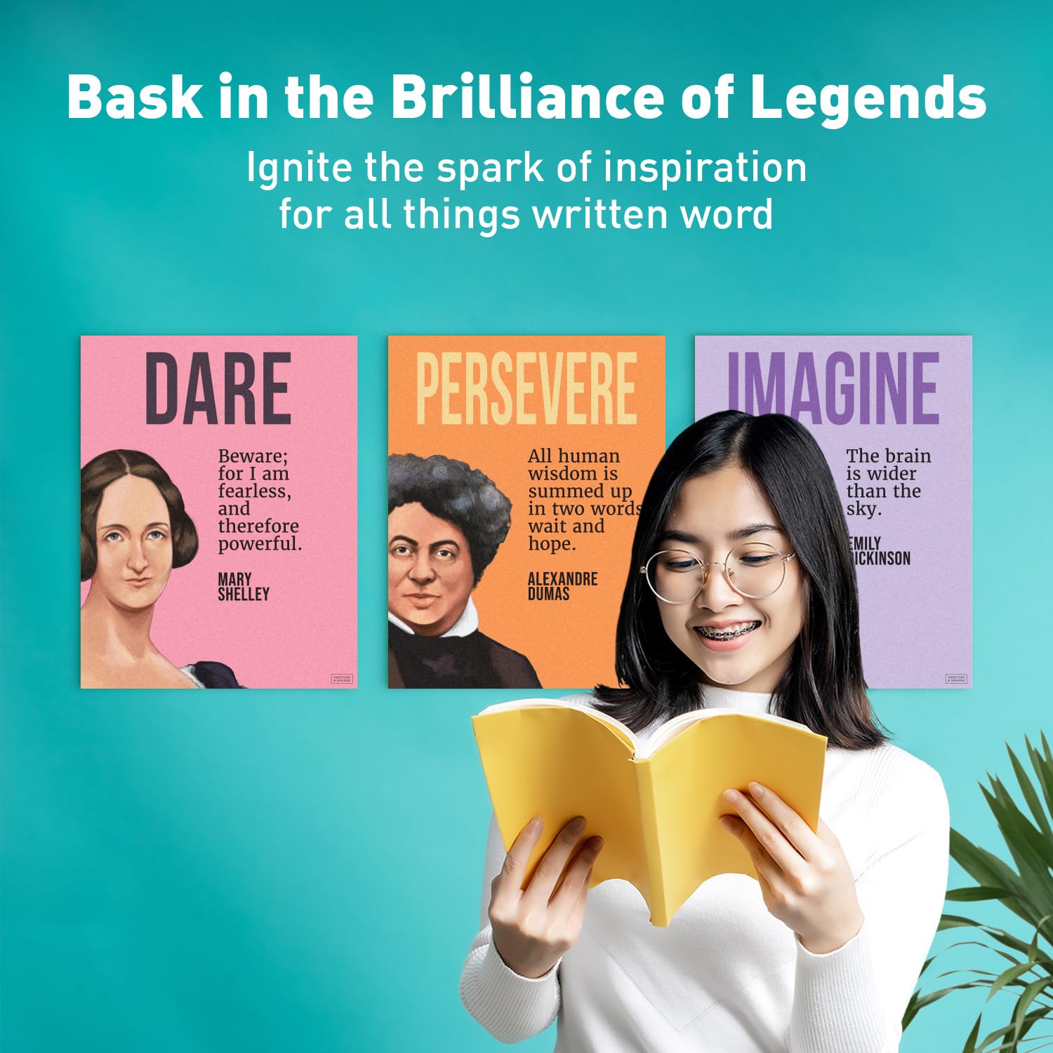 - INSPIRING LITERARY LEGENDS — These English classroom posters bring the faces and names of revered authors into the lives of students. From Charles Dickens to Mary Shelley, this reading classroom decor bundle honors the literary giants who touched hearts and minds. Invite their timeless wisdom into our everyday lives through these library decorations for school