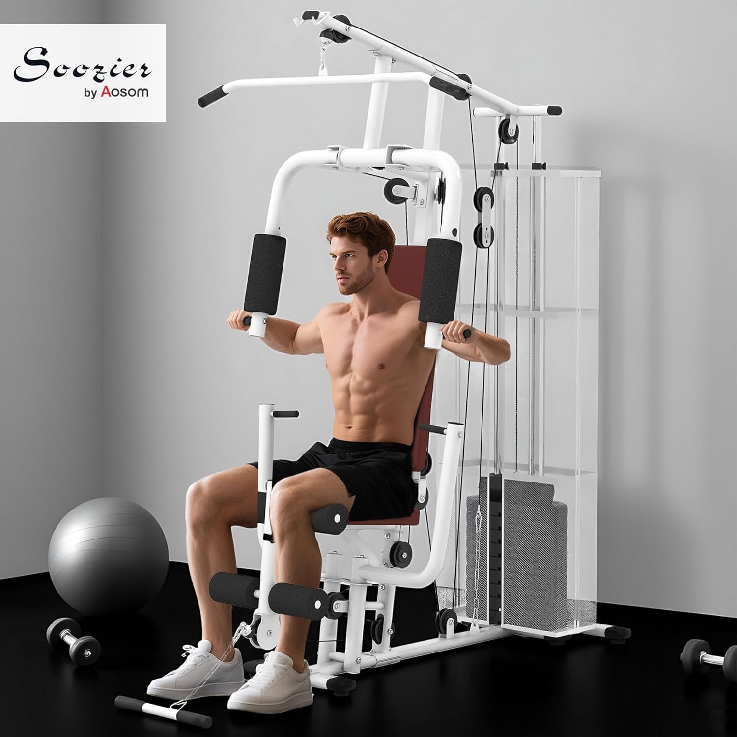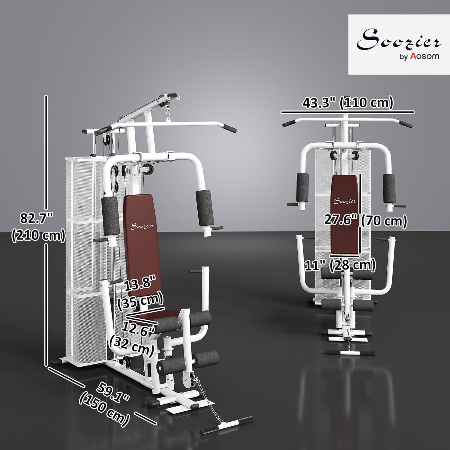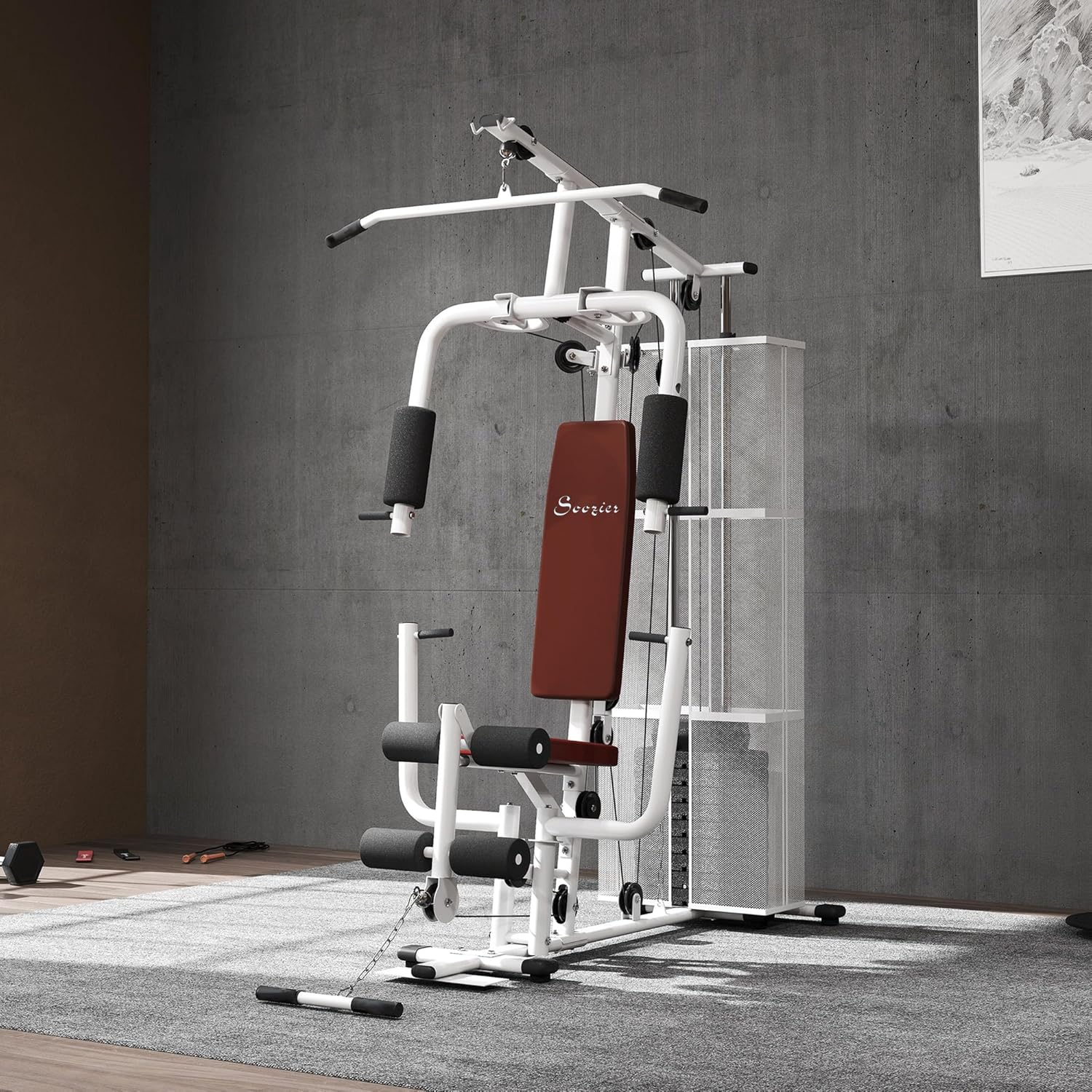 Soozier Home Gym, Multifunction Gym Equipment Workout Station with 100Lbs Weight Stack for LAT Pulldown, Leg Extensions, Preacher Bicep Curls, Triceps Pulldowns, Chest Press