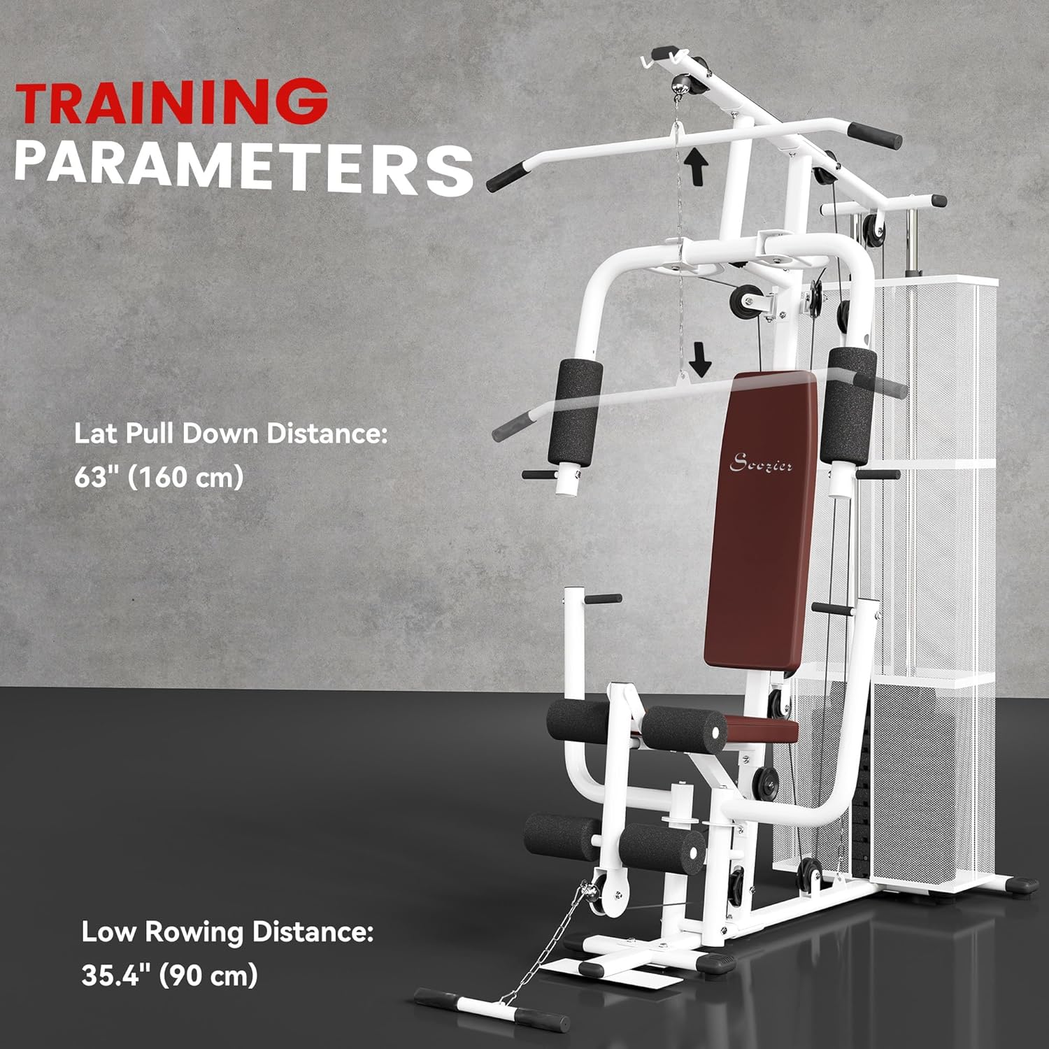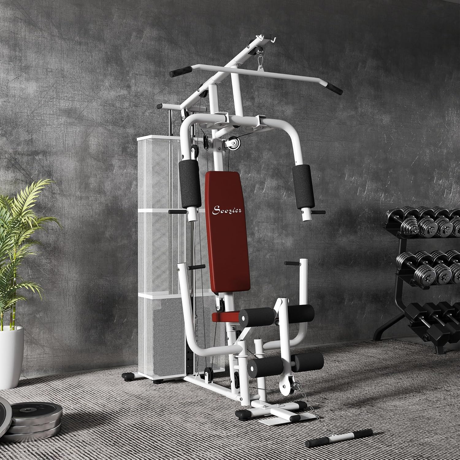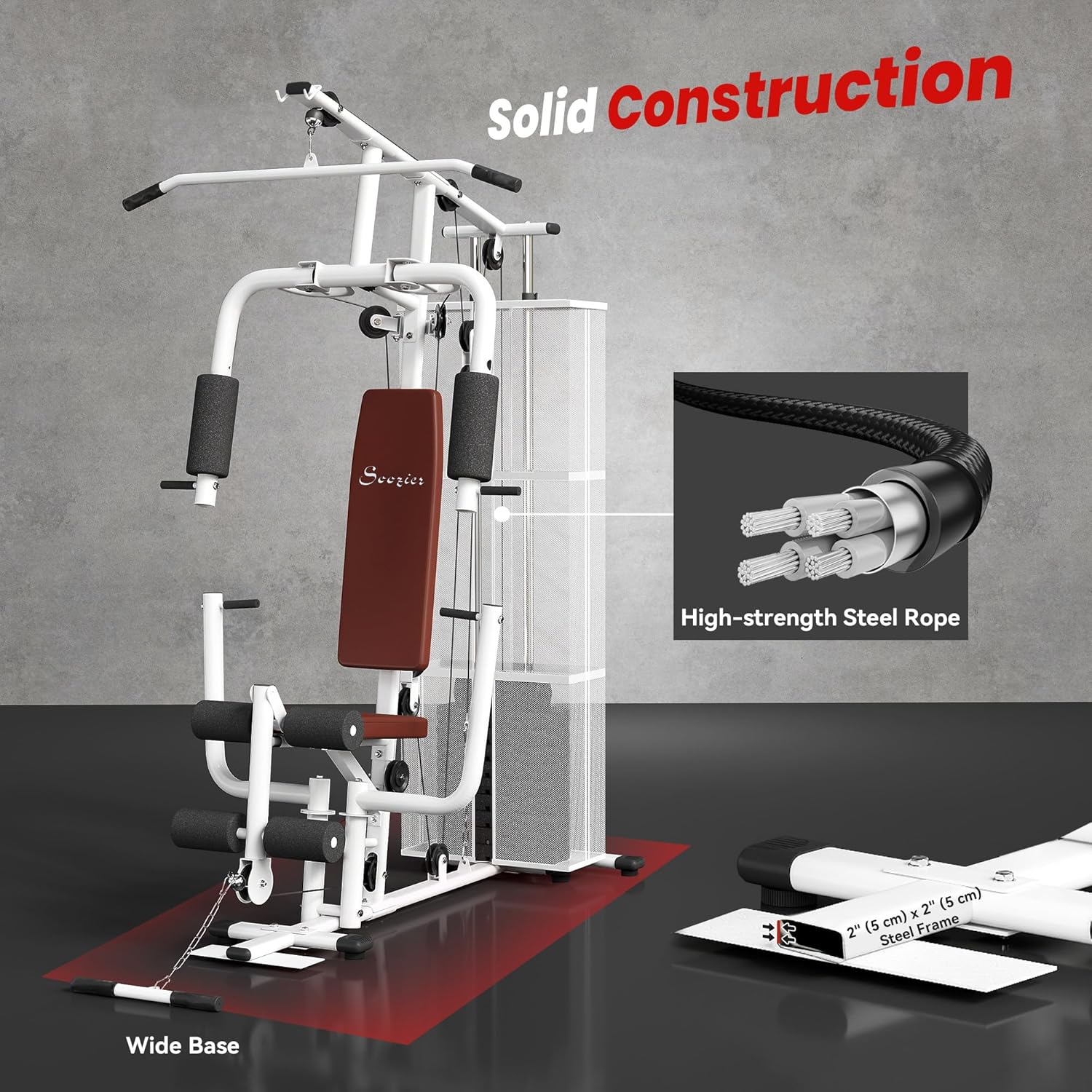 Soozier Home Gym, Multifunction Gym Equipment Workout Station with 100Lbs Weight Stack for LAT Pulldown, Leg Extensions, Preacher Bicep Curls, Triceps Pulldowns, Chest Press