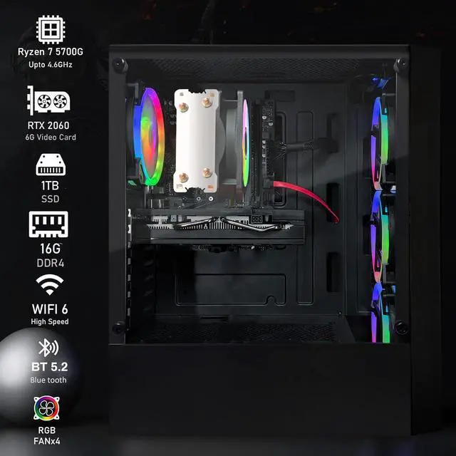 STGAubron Gaming PC Computer Desktop, AMD Ryzen 7 5700G up to 4.6Ghz, GeForce RTX 2060 6G Graphics, 16G DDR4 RAM, 1TB SSD, WIN11H