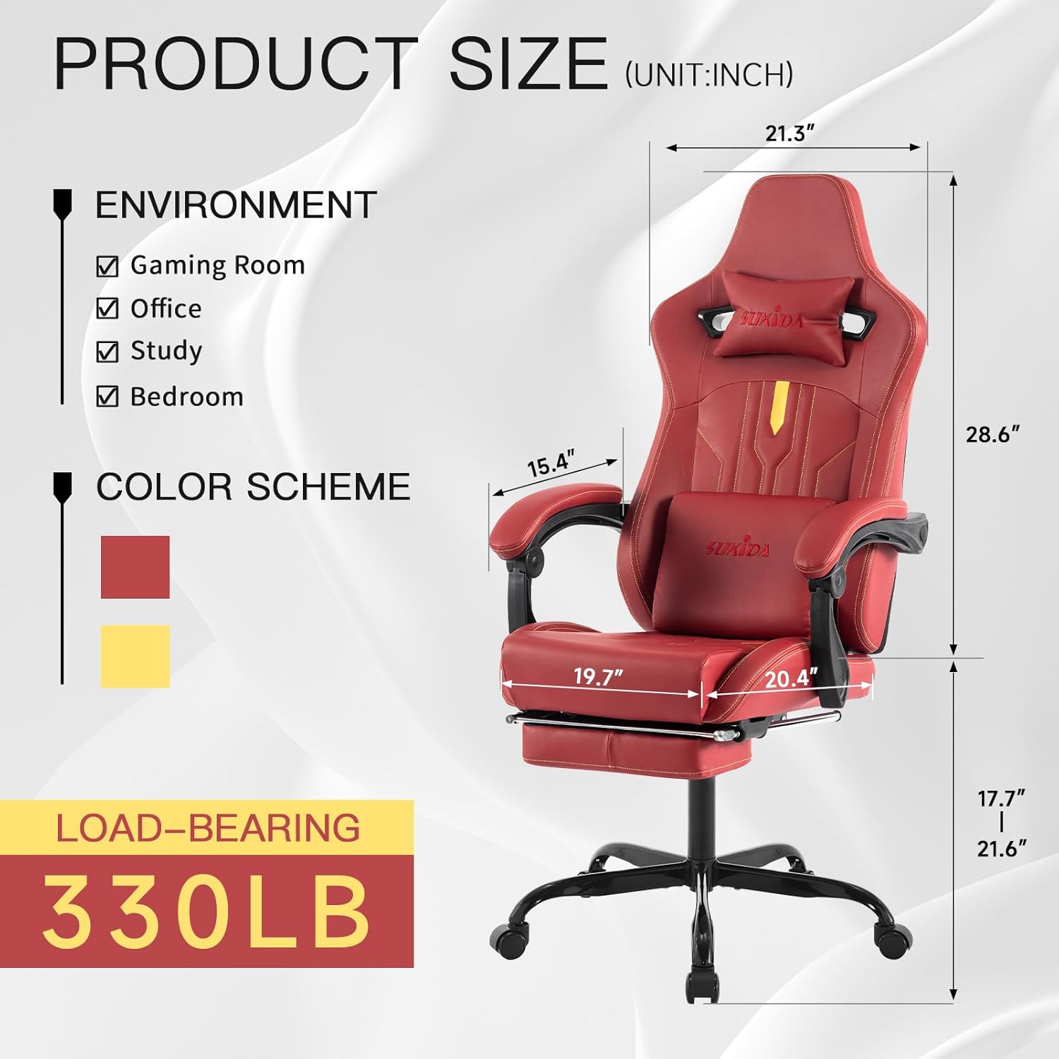- Assembly & service: We will send you detailed assembly instructions and all accessories so that you can easily assemble the chair. If you have any questions, please feel free to contact SUKIDA team and we will do our best to make our customers satisfied.