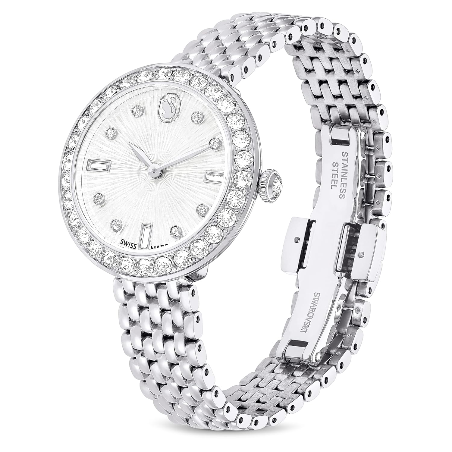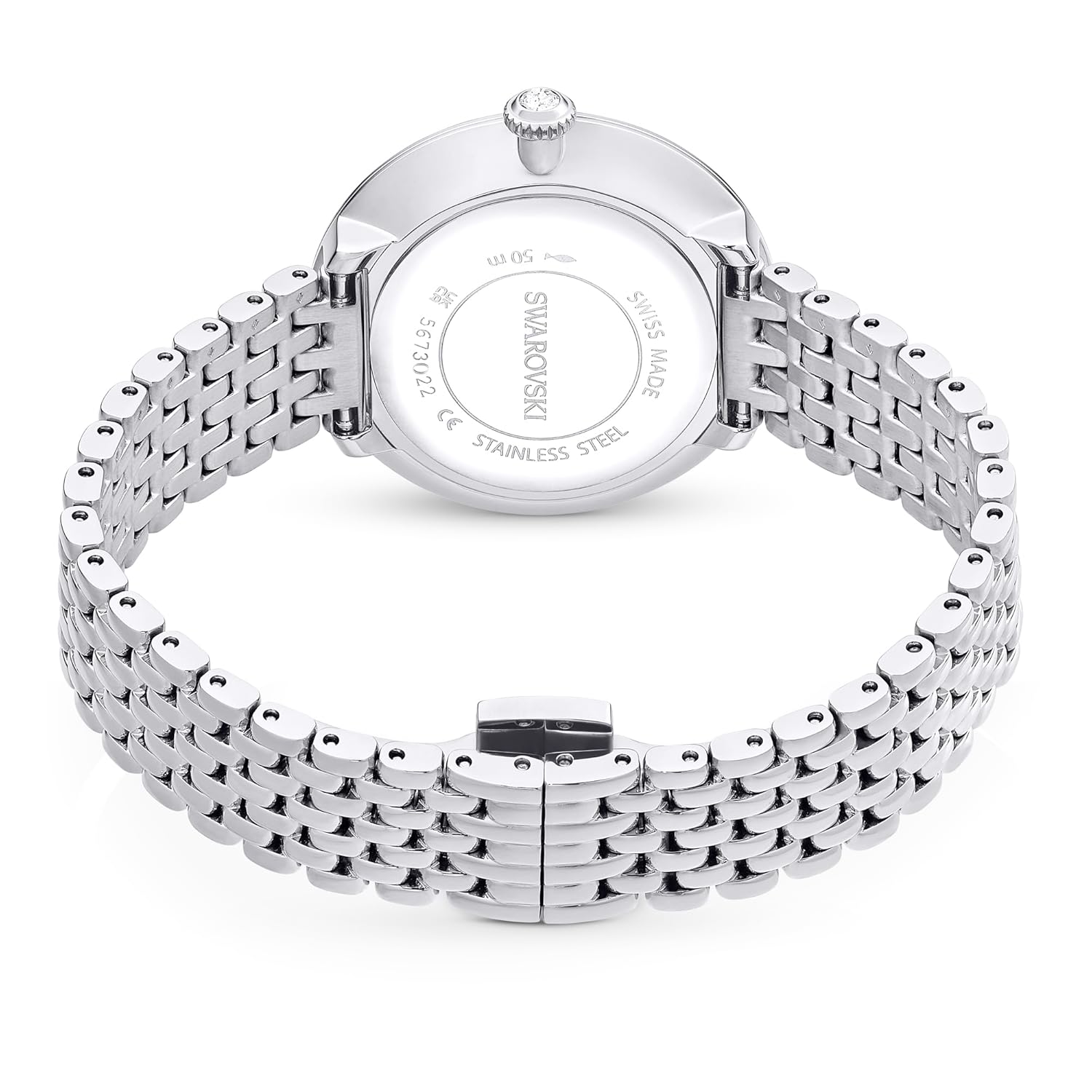 - Shimmering Style: Featuring a stainless steel case with a sparkling crystal pavé bezel and a single crystal in the crown, this timepiece sparkles in a way that only Swarovski pieces can