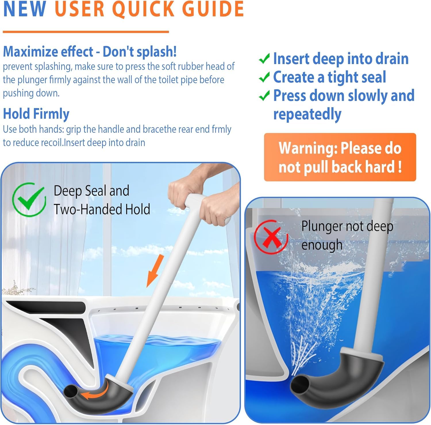 FINALLY! A plunger that does work as advertised. I’ve tried four different ones to date, this one outperformed all. Easy to use, ZERO splashing, which all others frustratingly did! Highly recommended.
