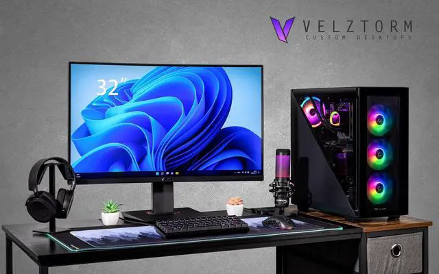 Velztorm Black Gladio Custom Built Gaming Desktop PC (AMD Ryzen 9 5900X, GeForce RTX 5060, 32GB DDR4, 2TB PCIe SSD, 120mm AIO, 750W PSU, RJ-45, 1
