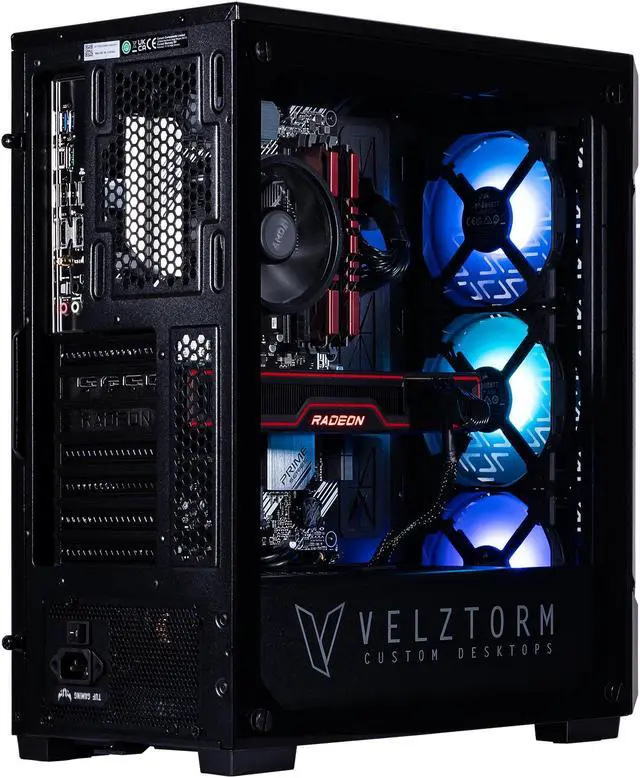 Velztorm Fultix Custom Built Gaming Desktop PC (AMD Ryzen 5-5500, Radeon RX 9070 XT, 32GB DDR4, 1TB PCIe SSD + 1TB HDD, 750W PSU, WiFi 4, Bluetooth