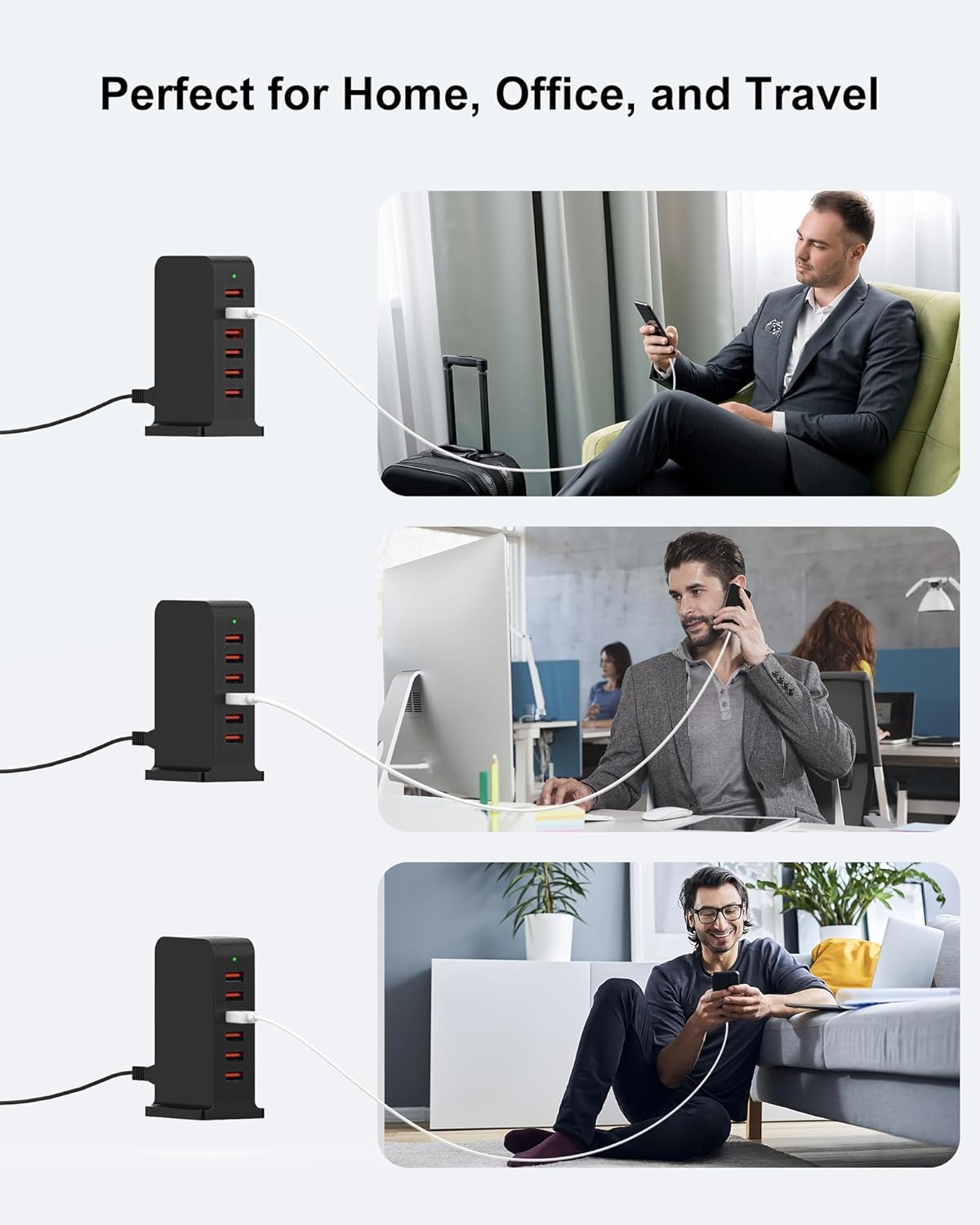 - Centralized Power for a Tidy Space:This 6-port USB charging station allows you to power multiple devices from a single wall outlet. Its vertical design helps reduce cable clutter and organize your charging area on a desk, kitchen counter, or nightstand, creating a dedicated power hub for the whole family’s electronics.
