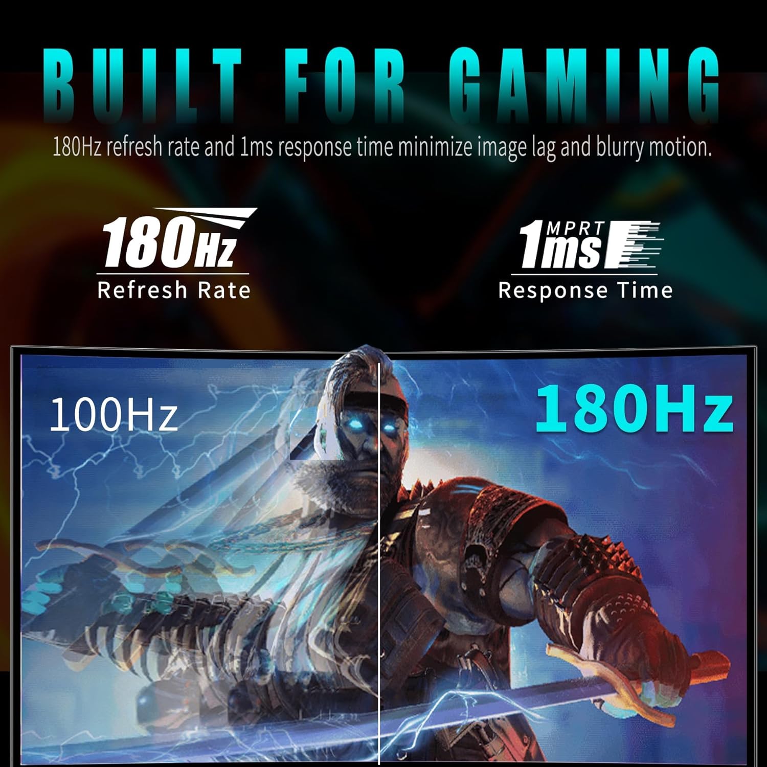 - 【Faster Response Time】Enjoy a lag-free and smooth gaming experience with this monitor’s high refresh rate of 180Hz. Fast-paced action is rendered with precision, ensuring you can react swiftly to every moment in your games