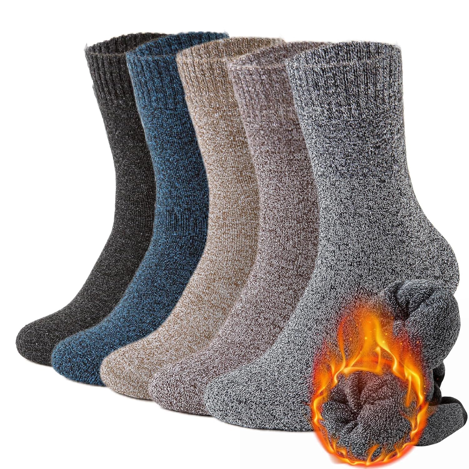 VoJoPi 5 Pairs Thermal Mens Socks, Warm Wool Winter Cozy Cushioned Thick Socks For Work Hiking Casual, Size 7-12