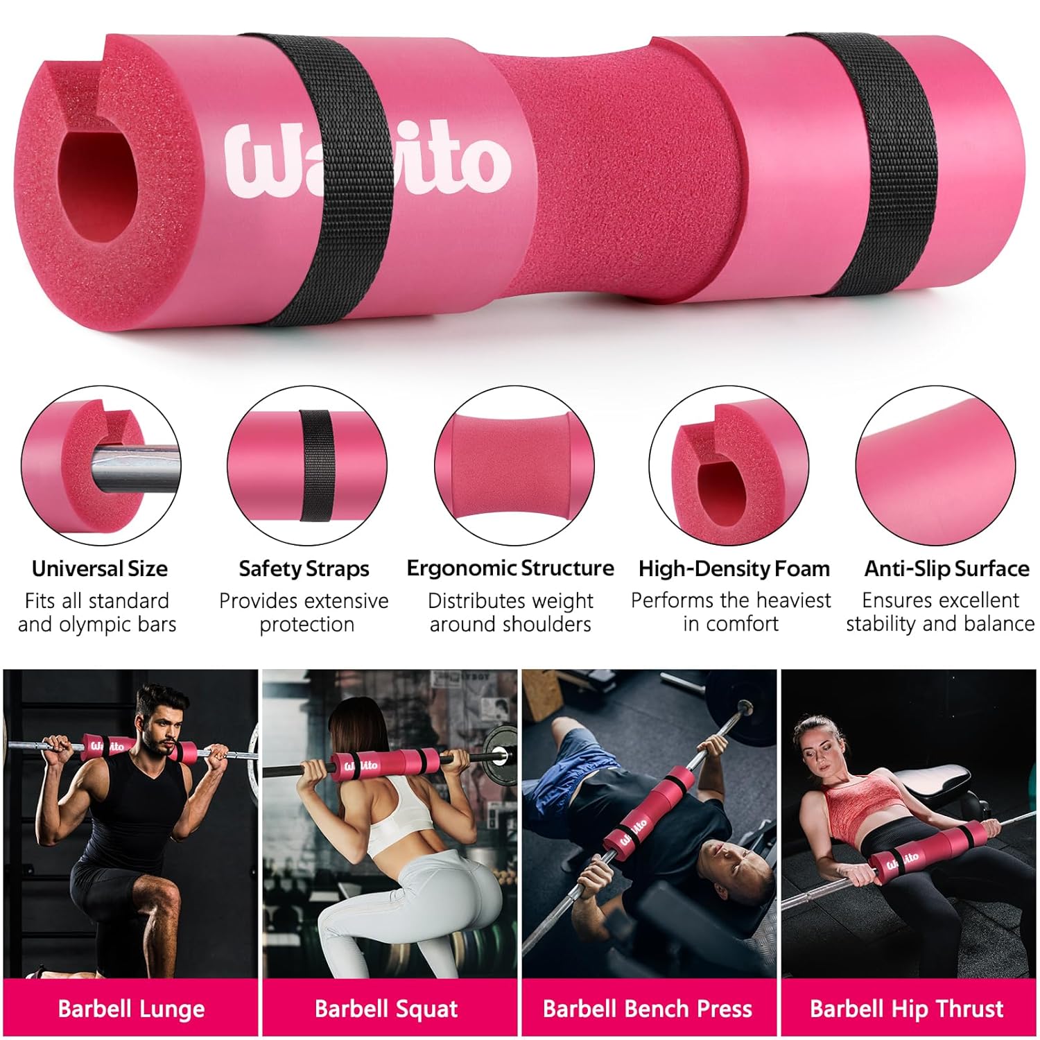 - Complete and Valuable Barbell Pad Set – The WALITO bar pad for hip thrusts set is the most complete gym accessories set for women and men for lower-body workouts on the market. It has 1 hip thrust pad for barbell, 2 gym ankle straps, 2 lifting straps, and 1 levels of resistance booty bands for working out. One gym essentials set for everything you need to develop your Leg and Booty, allowing you to get your “own” set to fitness at the gym!