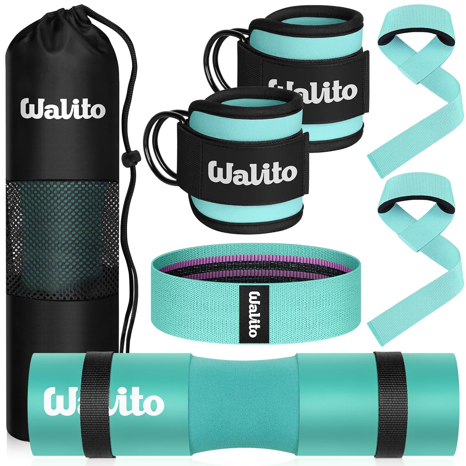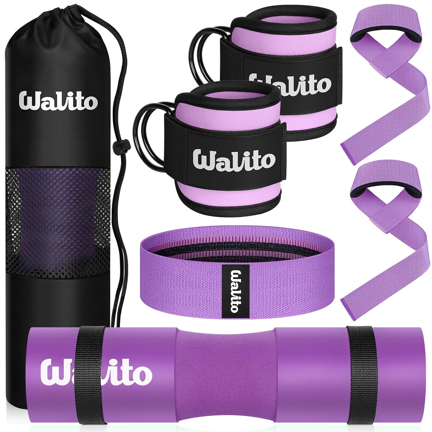 11 reviews for WALITO 8Pcs Barbell Pad Set for Hip Thrust – Squat Pad,Gym Accessories for Women with Bar Bad,Bench Press, with Gym Ankle Straps,Resistance Bands for Working Out,Lifting…